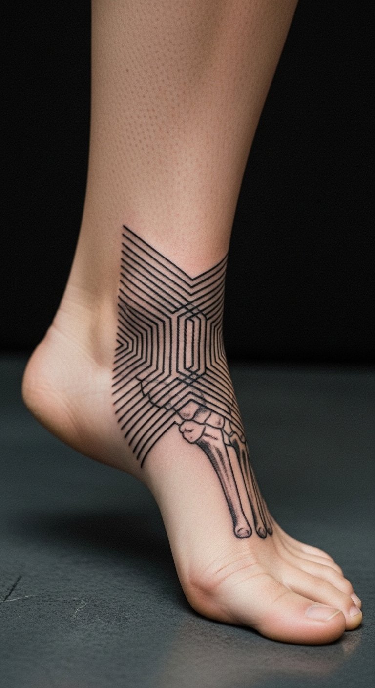 Lines that balance perfectly on your ankle. Sketch with a straight edge on paper for a fast setup. Ankles are great for discreet flair. Black lines cut costs and age well. Tailor it by mirroring the lines to your foot’s shape. Use tape to outline on your skin as practice. Find artists who do quick, cheap sessions for small areas. The symmetry creates calm with minimal ink. Care with basic bandages from your kit. Pair with socks for versatile style.