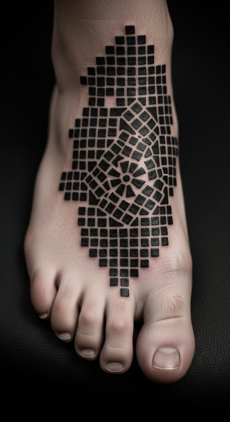 Tiles that mosaic on your foot. Tile sketches on paper help visualize. Feet are for grounded style. Black tiles are budget options. Customize to foot shape. Practice with tile stickers. Look for foot tattoo specials. The texture adds interest. Care with foot creams. Wear with sandals.