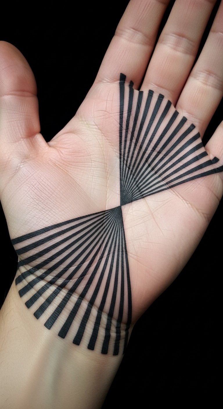 Lines that converge on your palm. Line drawings on paper are quick. Palms offer interactive designs. Black lines mean cheap sessions. Adapt to palm creases. Use hand strings for tests. Artists do palms affordably. The perspective draws attention. Protect with gloves. Use in daily gestures.