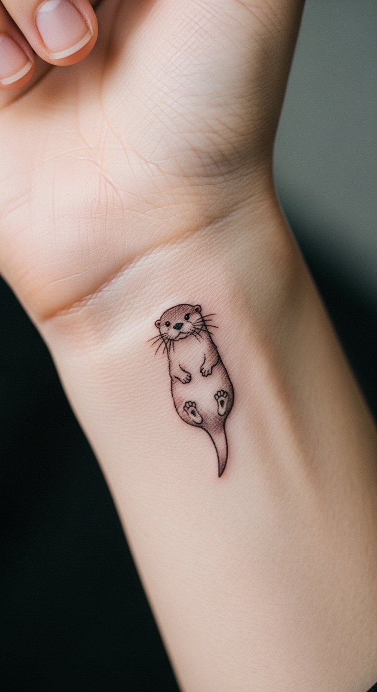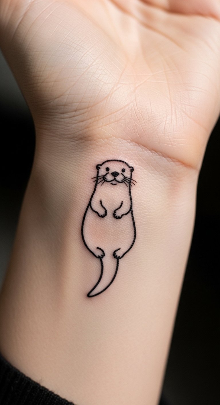Think about a simple otter outline. This design uses just a few lines to show the otter’s shape. It fits perfectly on your wrist. You get a cute look without much fuss. Start with a sketch on paper. Use a fine-tip pen to draw it. This helps you see how it might look. For budget tips, find free online templates. Print one and trace it onto your skin with washable markers. Talk to a local artist who offers small sessions. They often have deals under $50. Keep it small to save money. Add your own twist, like a tiny wave. This makes it personal. Go for black ink if you’re new. It lasts and looks good on all skin. Try this on a temporary tattoo first. You can buy them cheap online. See if you like it before committing.