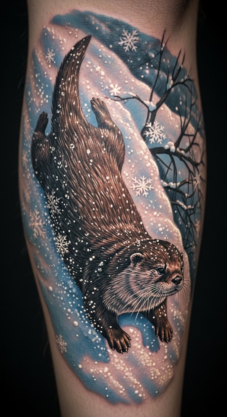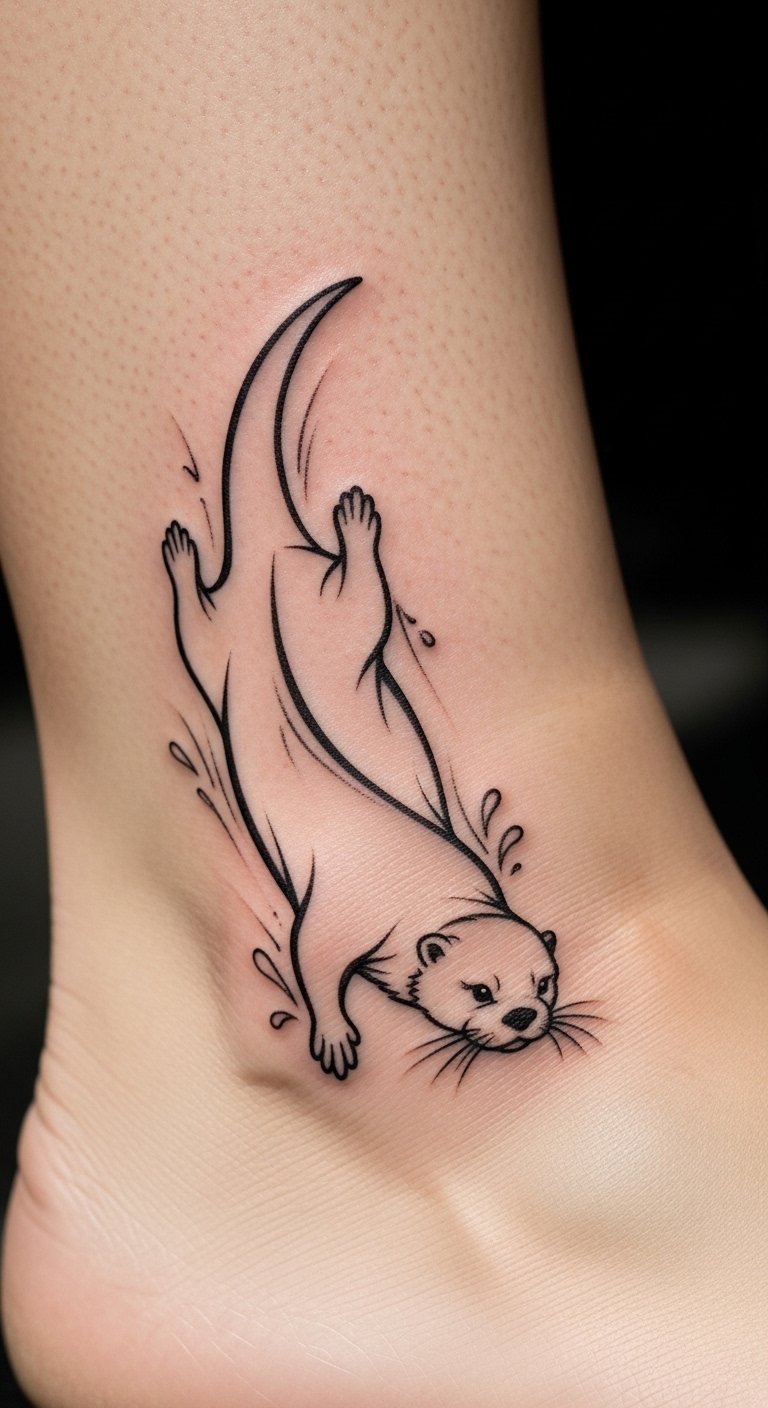 Picture an otter sliding down a bank. This design shows that fun moment. It brings energy to your ink. Place it on your ankle for easy hide or show. Draw a quick sketch at home. Use basic art supplies you already have. For savings, look for artist promotions online. Some charge less for simple pieces. Aim for under $100. Add small details like bubbles yourself in your drawing. Practice on paper first. Buy affordable transfer paper to test ideas. This design works well in black and white. It pops on lighter skin. If you have darker tones, ask for thicker lines. Try a temporary version from a dollar store. Wear it a few days to check.