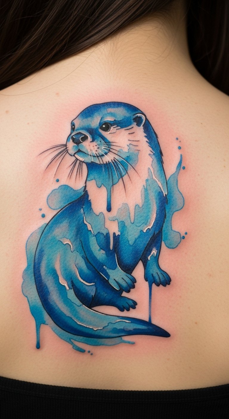 Go for a blue watercolor otter. It looks fluid and calm. Try your back. Blend blues in your sketch. Use watercolors from kids’ sets. Search for deals online, around $90. Practice blending on paper. Use washable paints on skin to test. Blue shades suit most complexions. Add light touches for depth.