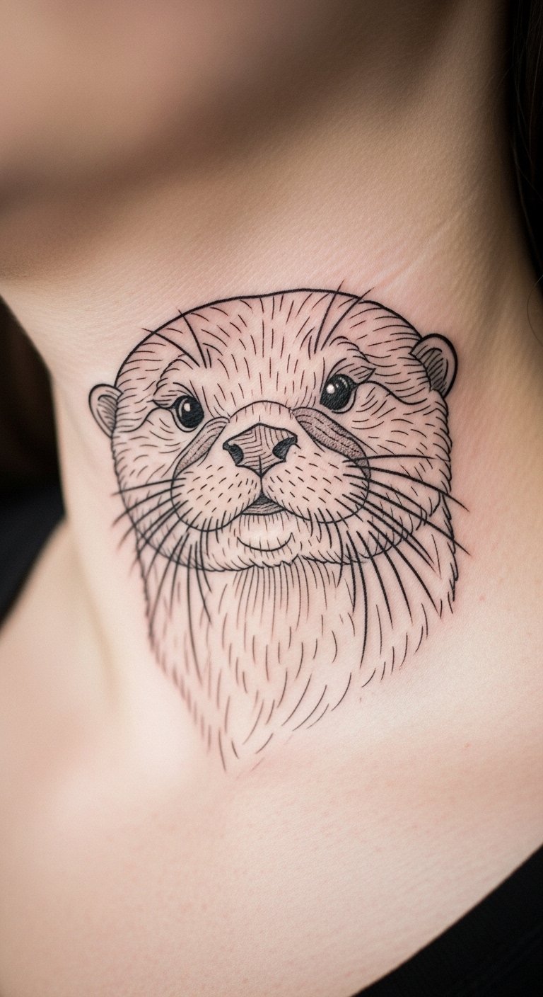 Just lines for an otter head. It’s clean and quick. Place on your neck. Draw fine lines with a thin pen. Apps offer free designs. Get it for $50 or less. Test with thin markers. Lines work on all skin. Add a curve for flair.