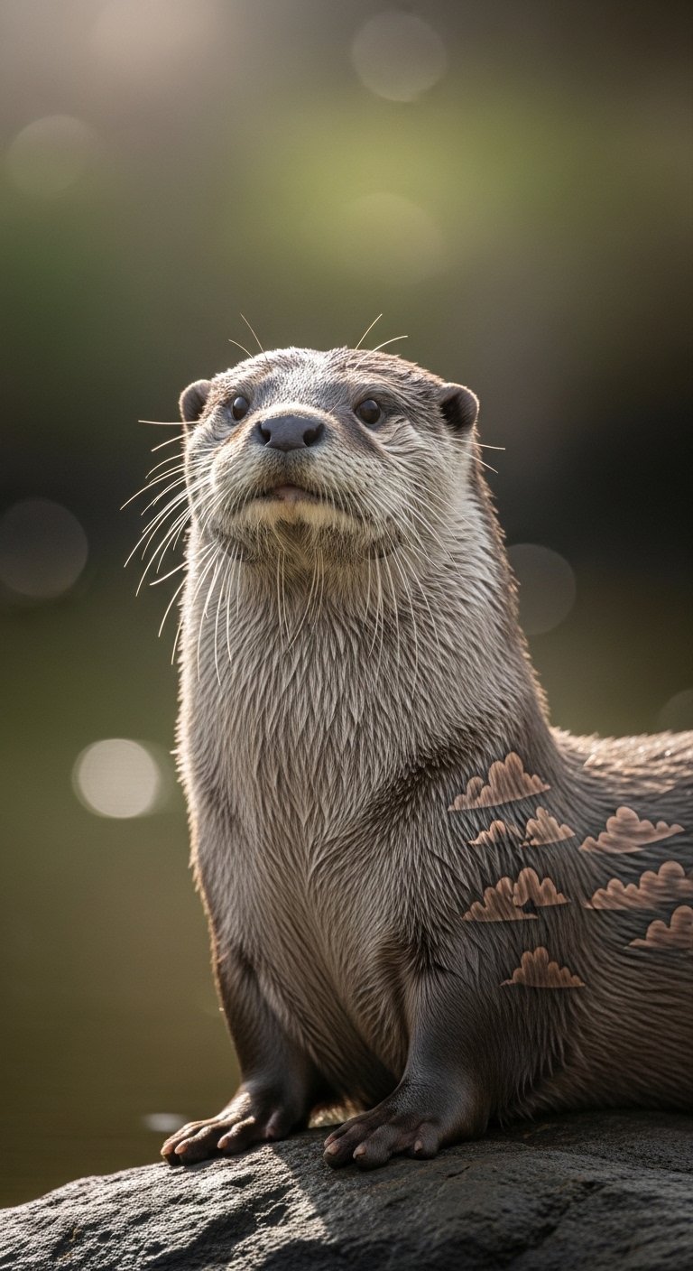 Otter and clouds. Graceful. On shoulder. Sketch clouds. Free designs. Artist offers. Test soft.