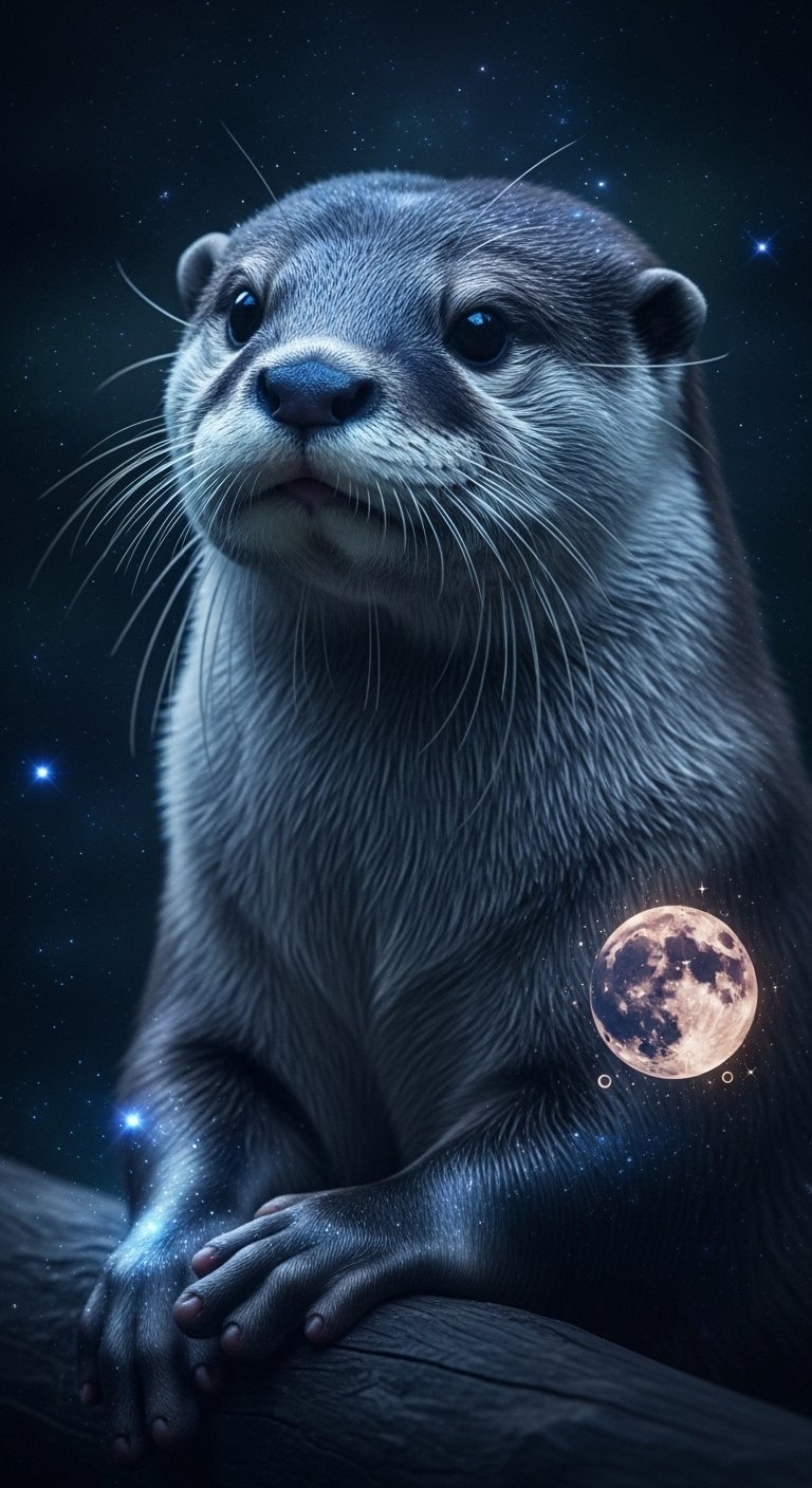 Otter and moon. Poetic. On arm. Sketch moon. Free celestial. Cheap options. Test night.