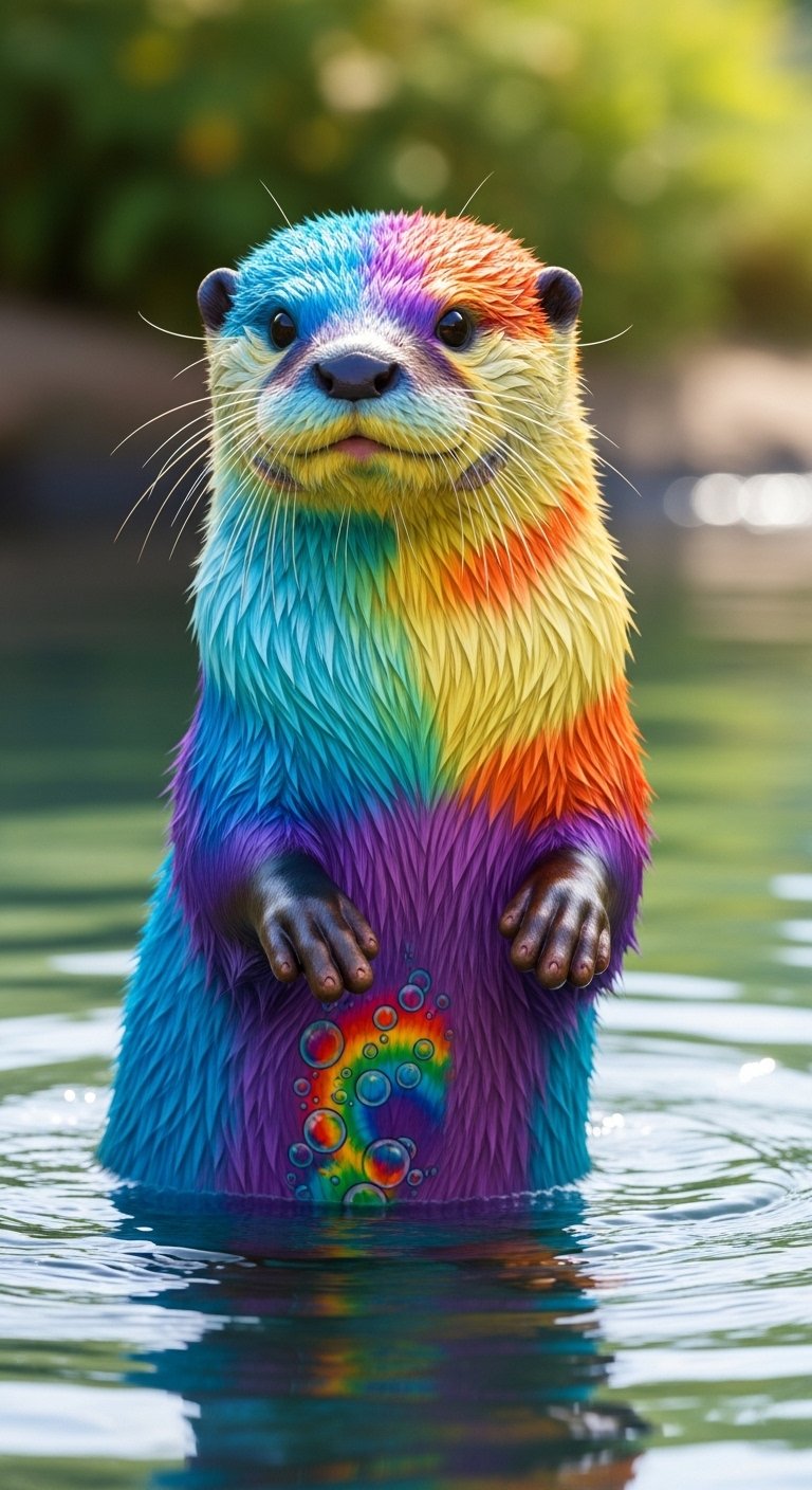 Bright otter and bubbles. Fun colors. On leg. Sketch colors. Free bubble designs. Color deals. Test colors.