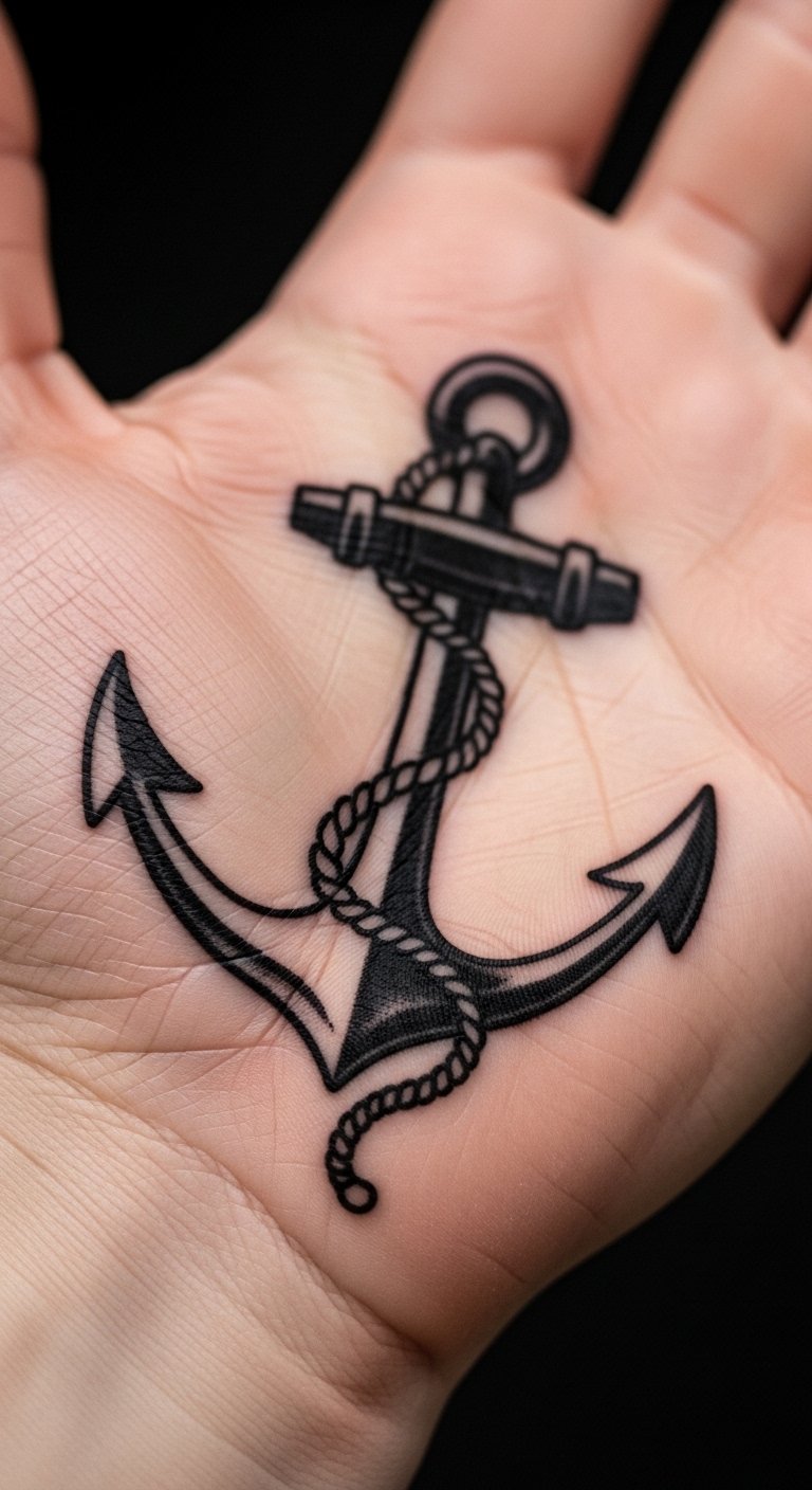 An anchor tattoo stands for stability and strength. Place it in the center of your palm for balance. Draw it with a marker before committing. Find affordable artists online through local groups. Aim for a design that fits in a small space to cut costs. Bold the key element like the anchor’s curve. Wear gloves during chores to protect it early on. This tattoo adds meaning without much complexity. Experiment with drawing tools at home for a DIY mockup.
