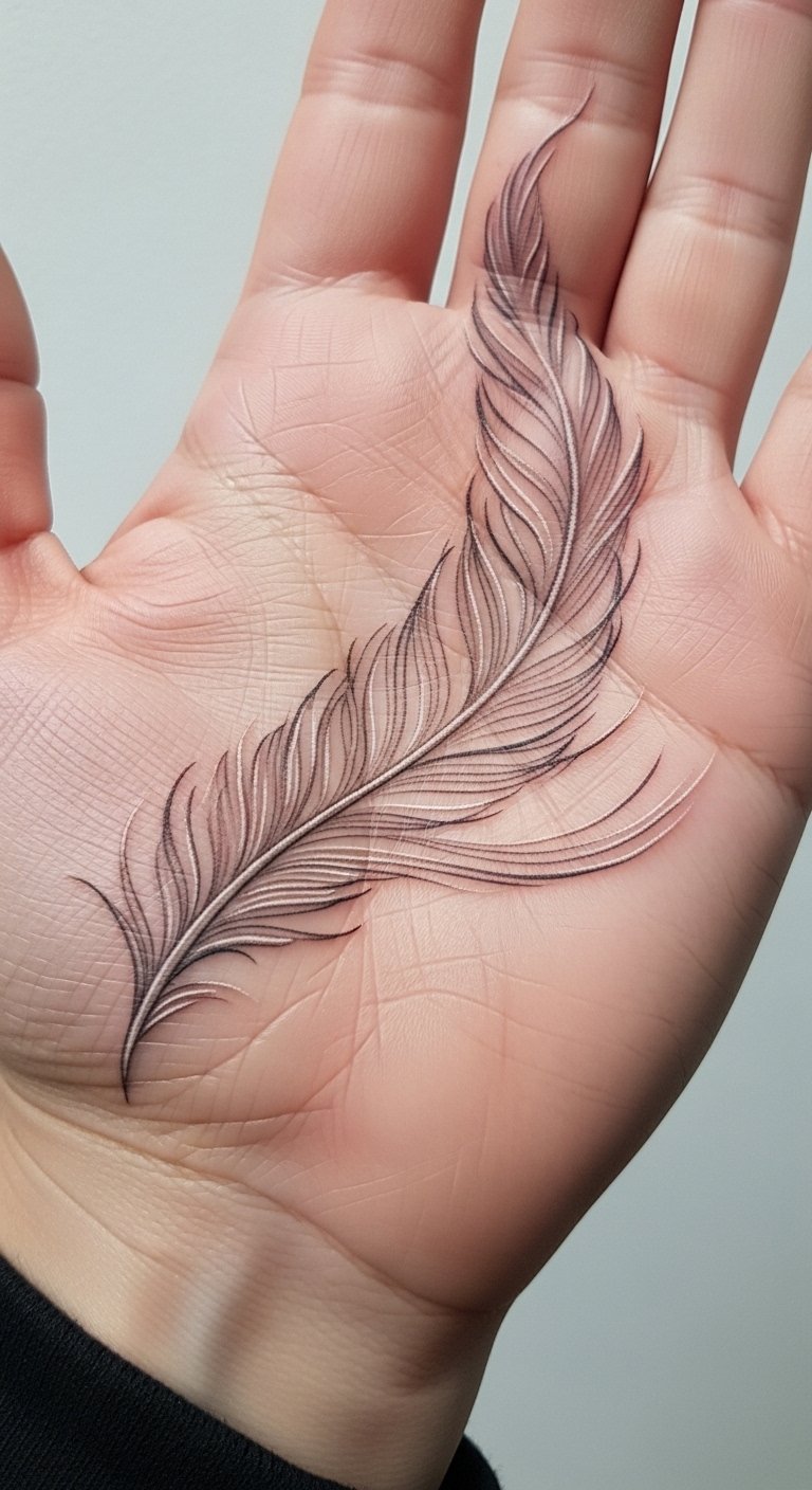Feathers symbolize freedom and lightness. Let lines flow across your palm. Use a pencil to outline at home. Search for feather experts at reasonable rates. Bold the feather tips for detail. Moisturize regularly to prevent fading. This design feels airy and easy. Try drawing with washable pens for experimentation.