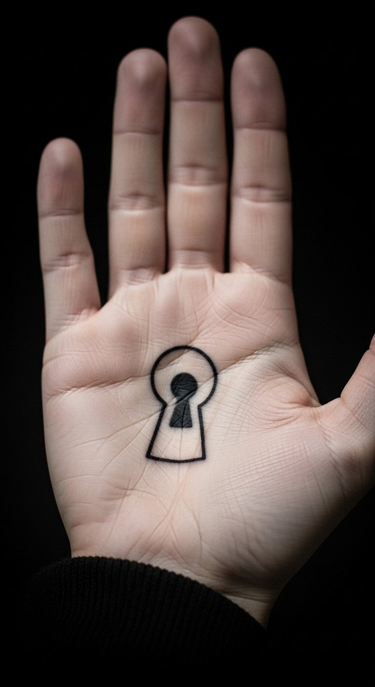 Keyholes hint at secrets and discovery. Cut one into your palm design. Outline with free online tools. Find keyhole artists at entry-level prices. Bold the keyhole center. Handle with care during daily tasks. This tattoo unlocks creativity. Try key shapes with cutouts at home.