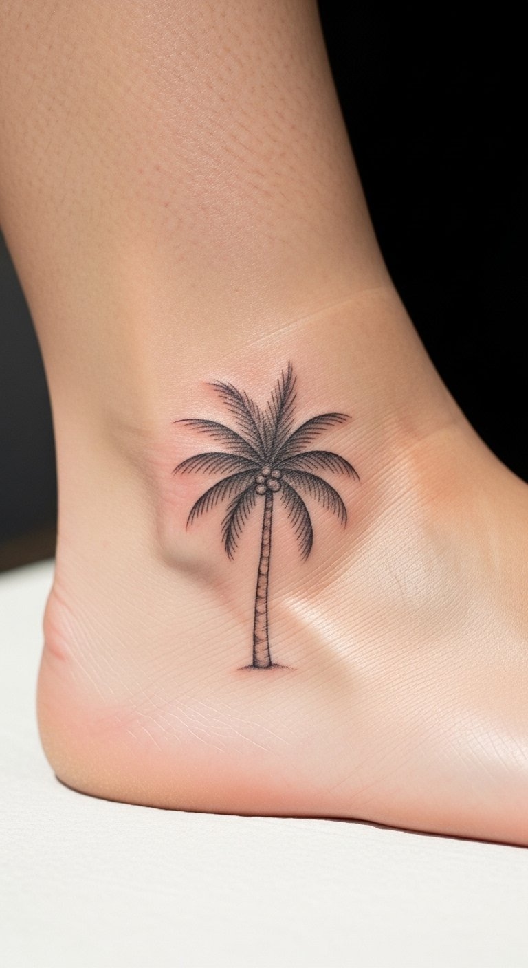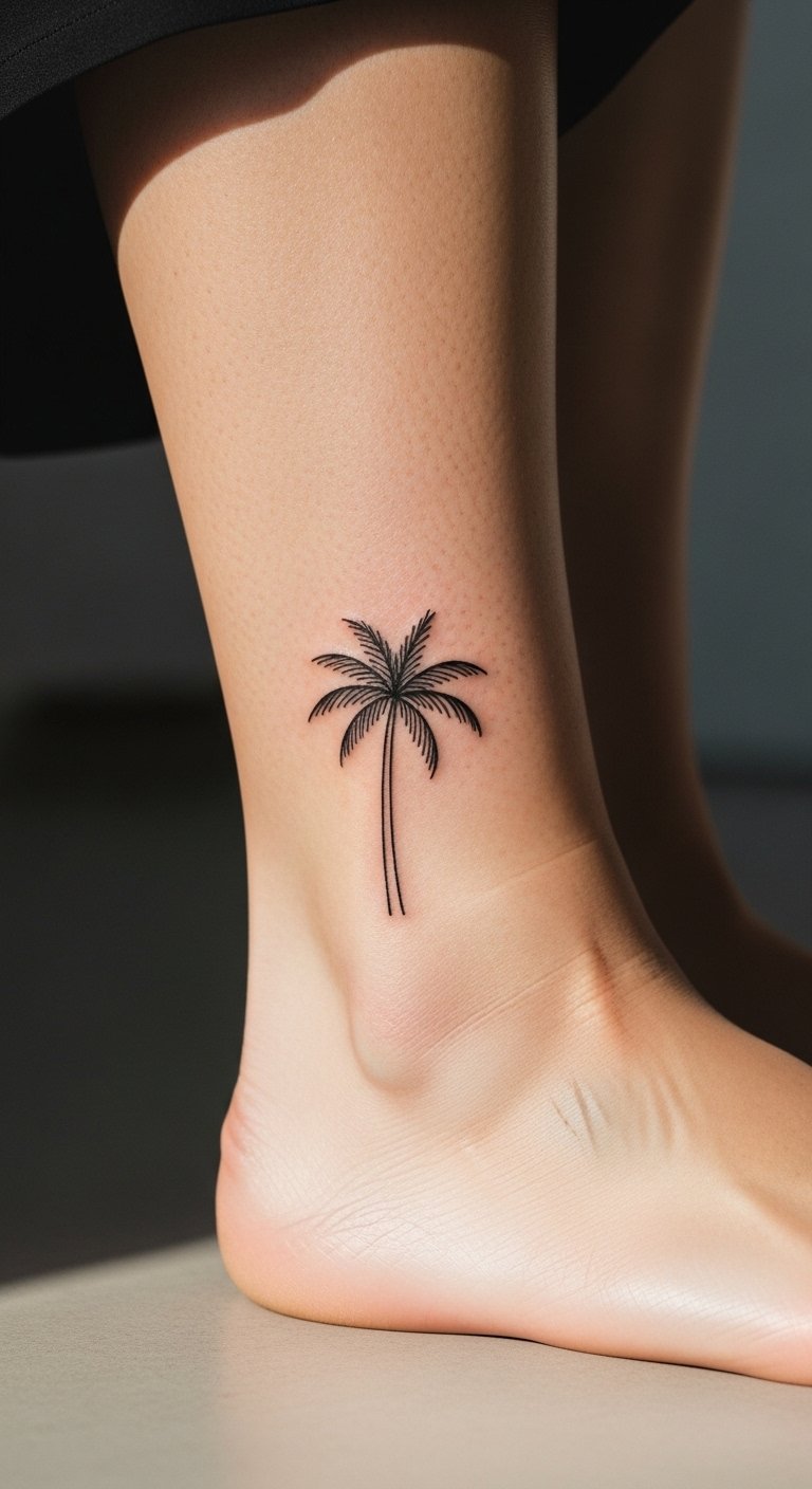 Ankle tattoos with palm trees bring a playful touch to your step. Keep it small and sweet for everyday comfort. Use a free app to doodle ideas quickly. Add a tiny fruit to represent growth. This spot is great for showing with sandals. Check for affordable options at nearby shops; expect $90 or less. Tailor it to your travels for meaning. Wash carefully with what you have at home. Try a fake tattoo kit to preview. It enhances your style without overwhelming. Pair with casual shoes for a fun vibe.