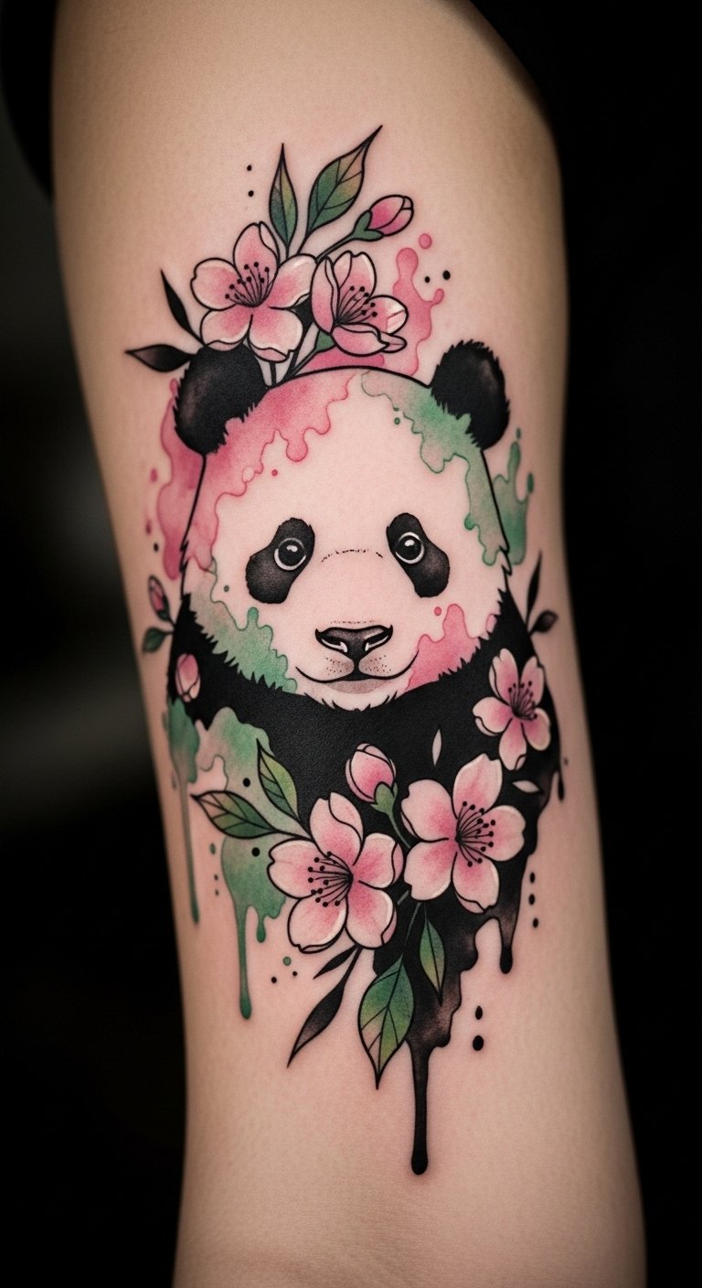 Go for a watercolour panda mixed with cherry blossoms on your arm for a soft feel. The colours flow like paint, adding a dreamy touch. It means harmony and growth in your story. Practice blending colours at home with water-based markers on paper. Look for free apps that let you design your own version. Choose an artist who specializes in watercolour for around $150 to keep costs low. Add blossoms yourself in the sketch phase for a unique twist. This makes the tattoo feel personal right away. Use it to mark special moments, like a new start. Try temporary tattoos online to test the design before committing. They cost less than $10 and last a week.