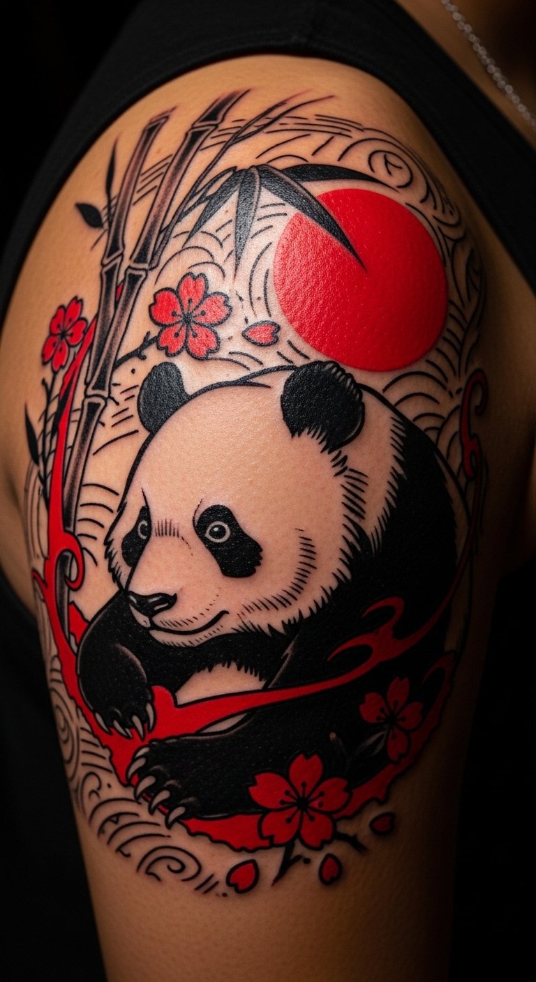 Pick a bold Neo-Japanese panda on your shoulder for a strong statement. It mixes traditional patterns with fresh colours for edge. The design speaks to inner strength and culture. Draw inspiration from free Japanese art prints you find online. Sketch it out with basic drawing tools at your desk. Find artists offering Neo-Japanese styles for about $200. They might have payment plans to make it easier. Add elements like waves to fit your vibe. This keeps the tattoo affordable and meaningful. Show it off at gatherings to share your story. Practice with henna kits from the drugstore to preview the look. They cost around $5 and wash off fast.