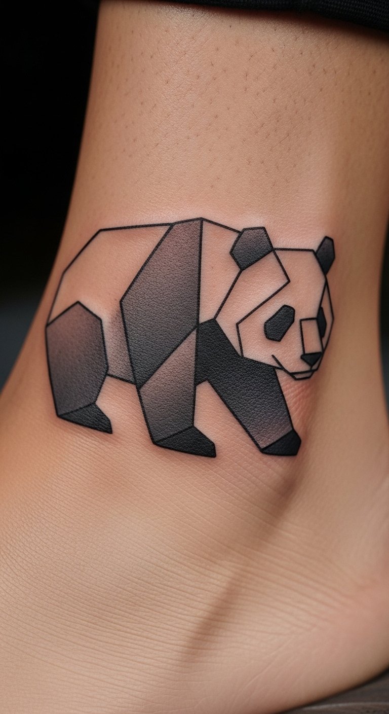 Opt for an abstract panda on your ankle to mix art and fun. Geometric shapes turn the panda into a modern puzzle. It stands for creativity and change. Draw abstract forms on paper with rulers and markers. Free design software can spark ideas quickly. Seek artists who do abstracts for about $90. Look for walk-in deals to save money. Customize with dots or lines that mean something to you. This makes the tattoo uniquely yours. Wear it with open shoes to show style. Try drawing on skin with washable ink first; it’s free and lets you adjust. Build your confidence step by step.