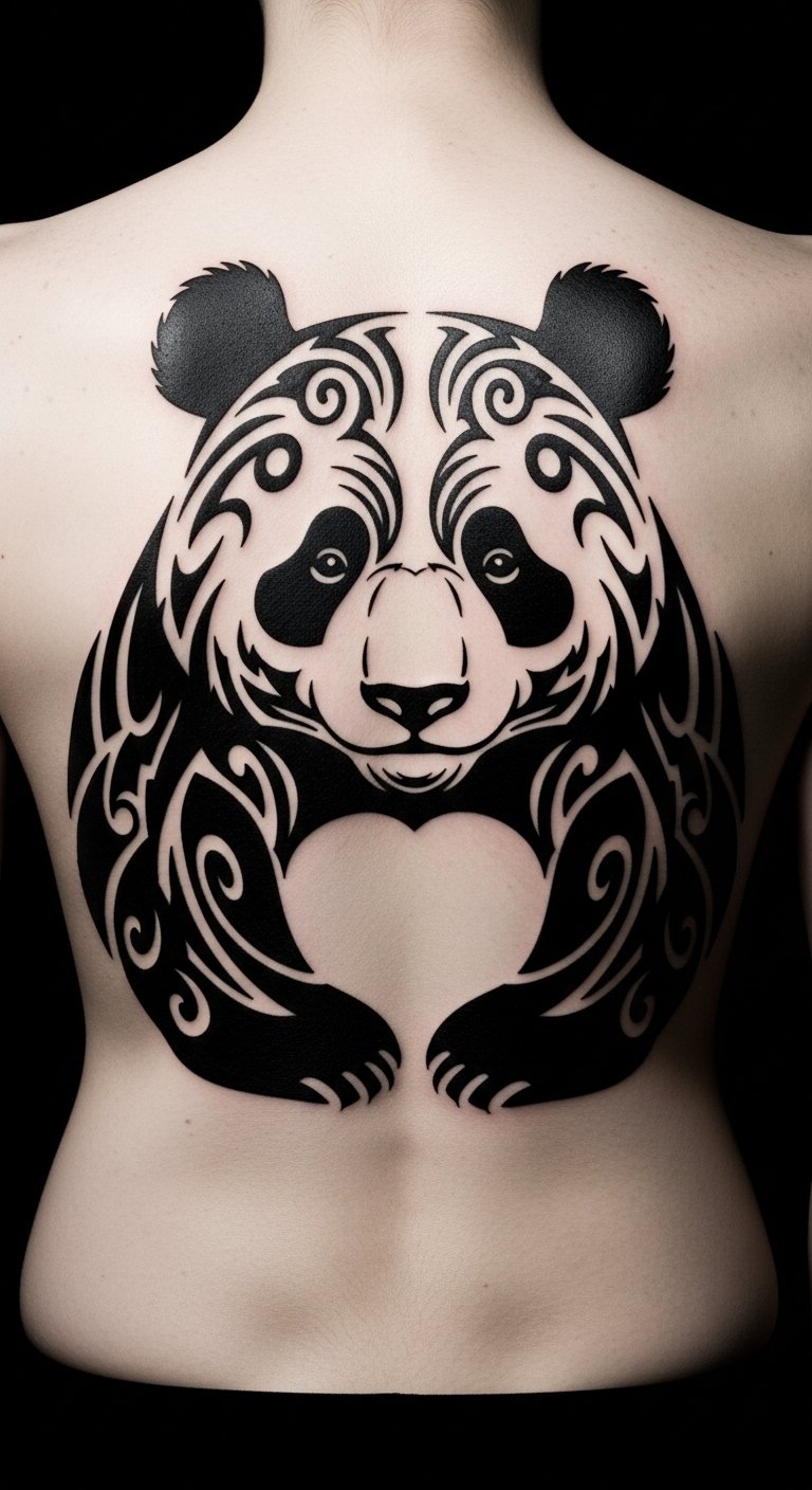 Choose a tribal panda on your back for a cultural nod. Patterns add edge and history to the design. It represents resilience and roots. Sketch tribal motifs from public domain images. Use a sharpie on paper to practice flows. Find tribal specialists for under $250. Ask about bundle packages for multiple elements. Include symbols that tie to your background. This keeps it personal and budget-friendly. Let it inspire stories of strength. Test with fabric transfers on clothes; they’re inexpensive and reusable. Get a feel for the look before ink.