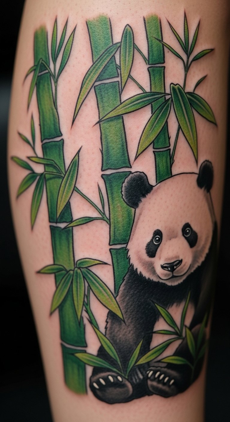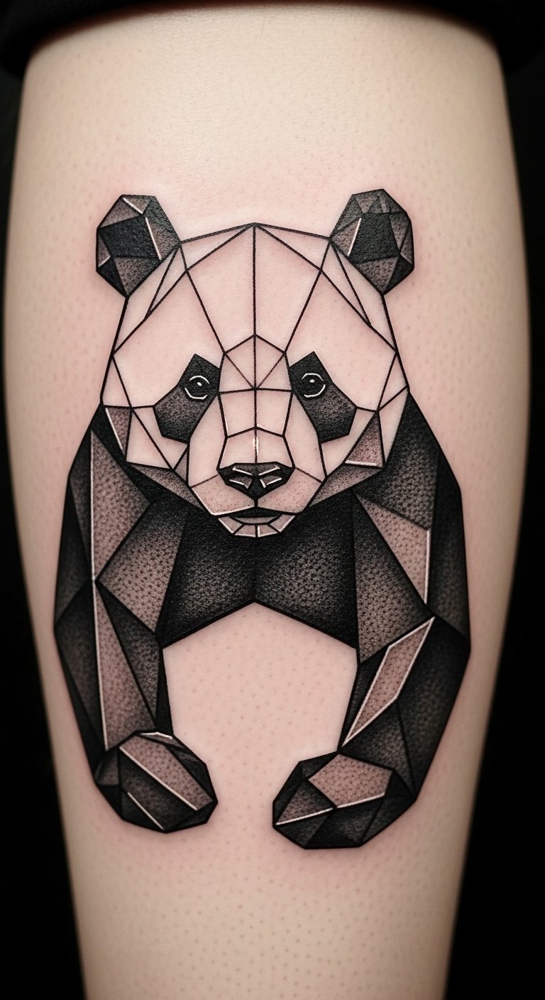 Try a geometric panda on your calf for a structured look. Shapes build a modern panda form. It means stability and design. Draw grids with a ruler at your table. Free geometry apps provide patterns easily. Choose artists for under $140. Ask for student rates if available. Add personal angles to the design. This keeps it affordable and unique. Show it in active wear. Practice with graph paper cutouts; they’re free and help plan. See the fit before ink.