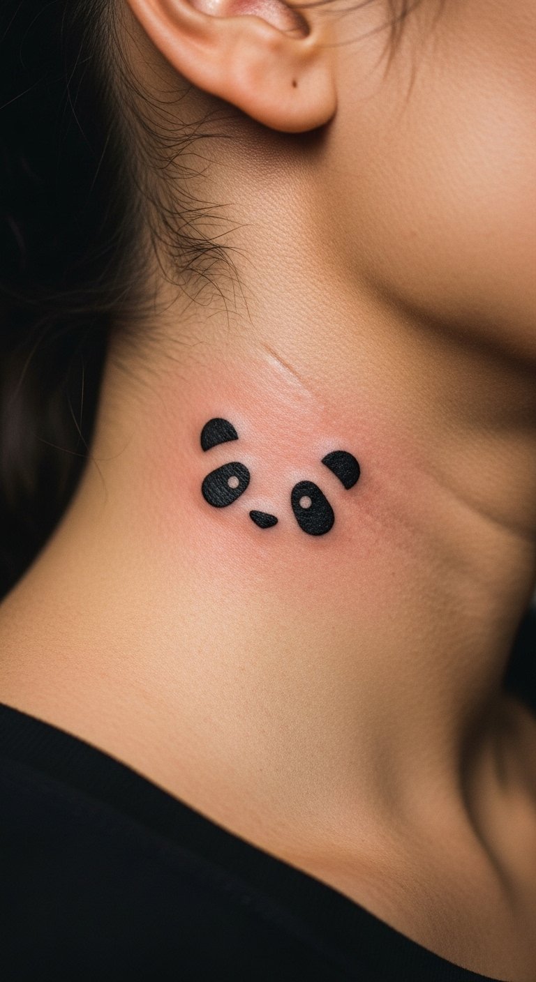 Go for minimalist panda eyes on your neck for a mysterious touch. Just the eyes convey curiosity and watchfulness. It stands for awareness. Dot paper with a pen to practice. Free eye tutorials online guide you. Select artists for less than $70. Check for quick session specials. Make it yours with varied sizes. This keeps costs down. Use it for daily motivation. Try eye stickers from kids’ sections; they’re fun and cheap. Preview the effect.