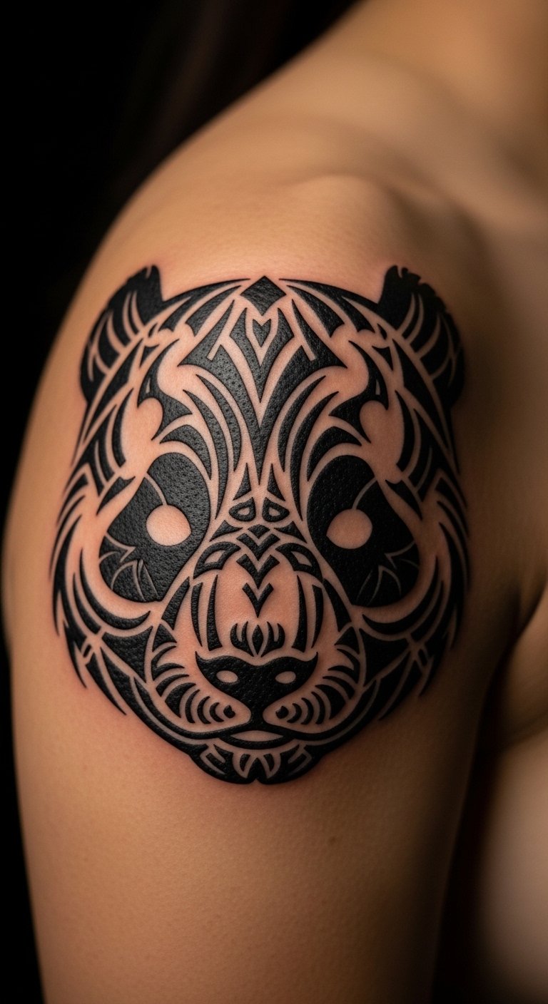 Consider a tribal panda mask on your shoulder for warrior spirit. Patterns mask the panda in culture. It stands for protection. Trace masks on paper. Free tribal designs online guide. Find mask specialists for around $200. Inquire about cultural sessions. Add feathers for your story. This adds value without extra cost. Wear it with pride. Practice with mask drawings; they’re free and engaging. Build excitement.