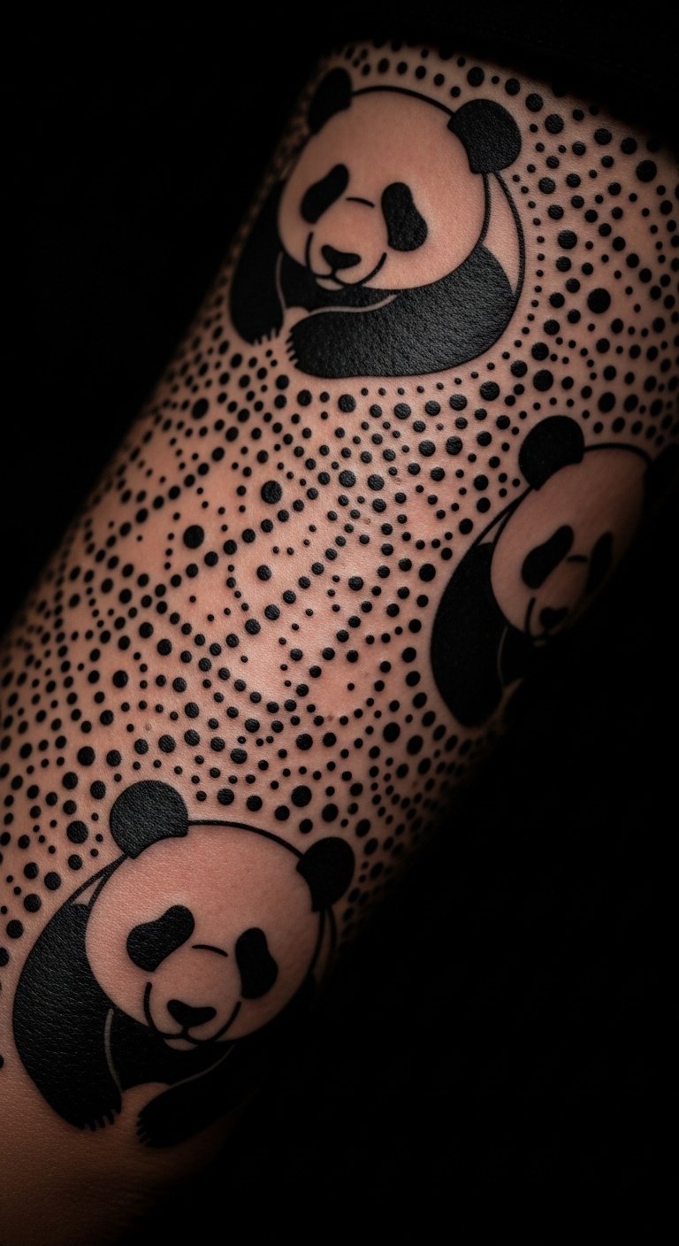 Try a bold panda with dots on your arm for textured fun. Dots add detail to the bold form. It stands for connection. Dot paper with markers. Free dot tools online guide. Find dot artists for about $130. Look for pattern packages. Include meaningful dots. This saves money. Use it for unity. Practice with dot stickers; they’re cheap. Get creative.