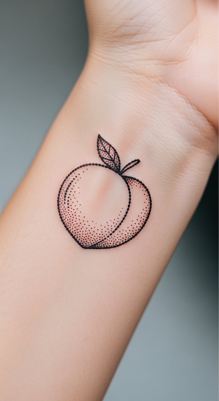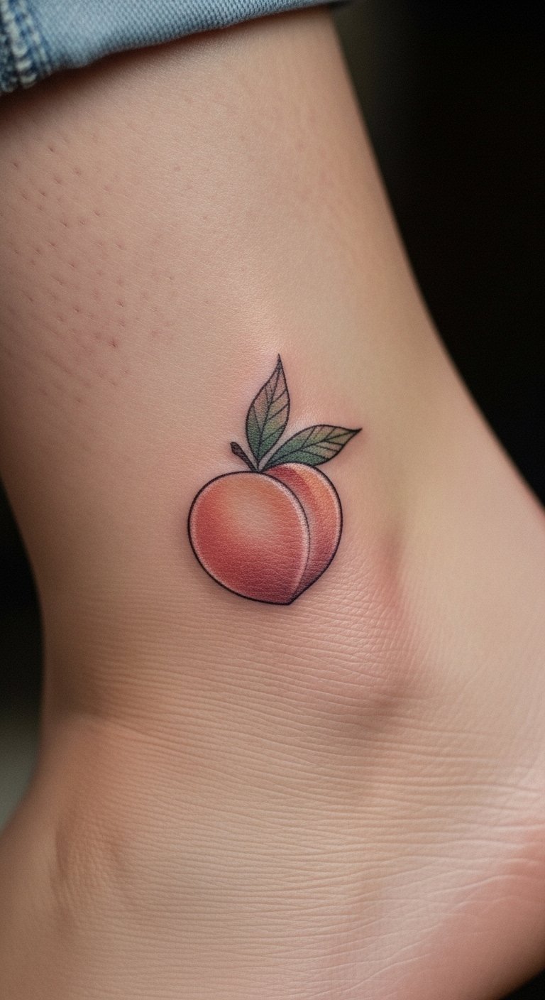 Size matters for beginners. A small peach with a leaf fits perfectly. Opt for behind the ear or ankle. Use minimal colors for subtlety. Expect to pay $40 to $80. Draw leaves on paper at home. Experiment with shapes. Personalize by adding a stem. Visit a local shop for quotes. Ask about quick sessions. Protect it with bandages initially. Wear socks to hide it if needed. This design symbolizes new life simply. Layer with accessories like anklets. Test with stickers first. Stick one on and check the spot. Budget-friendly and fun.