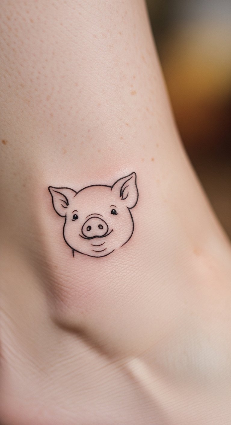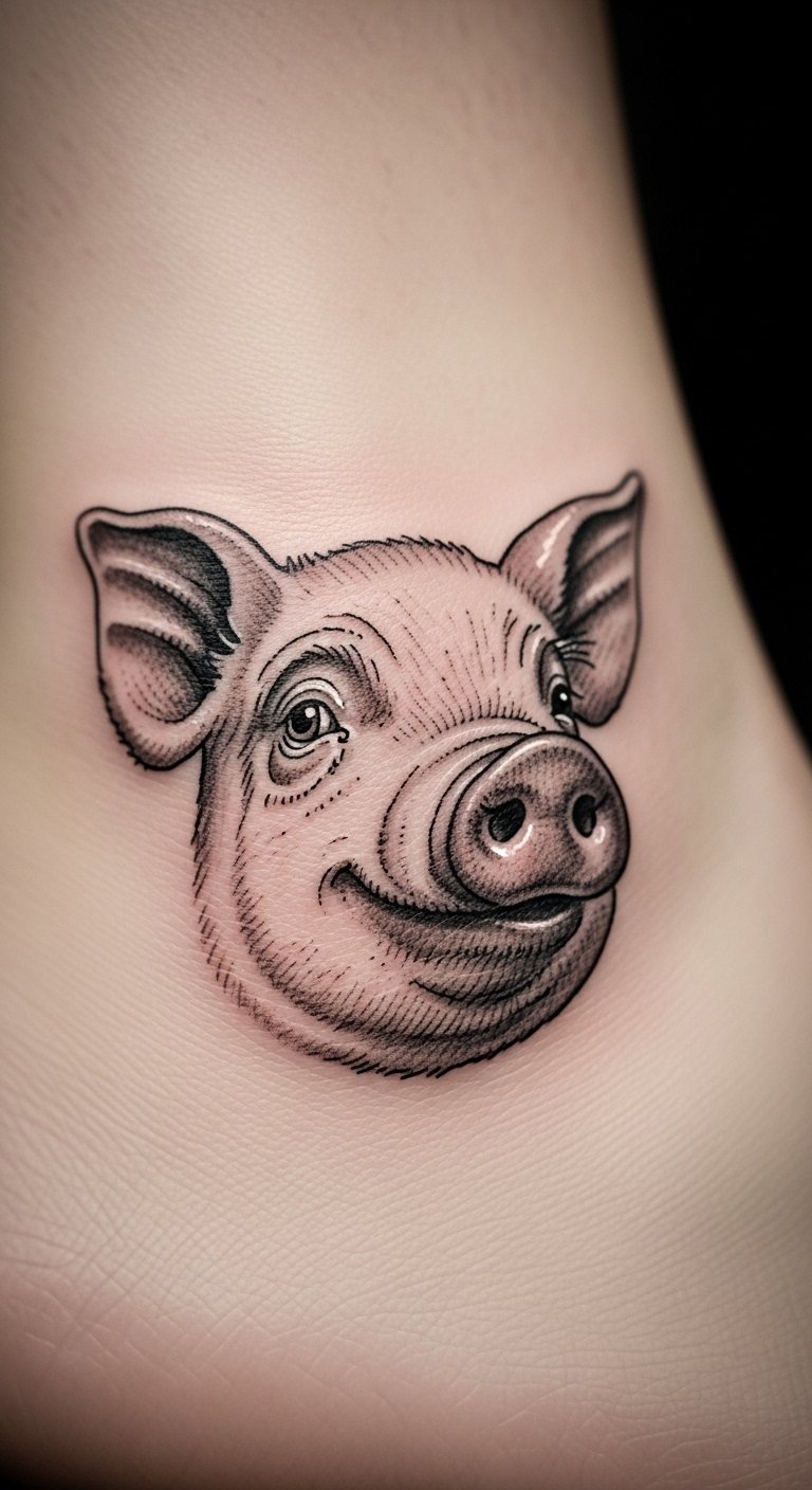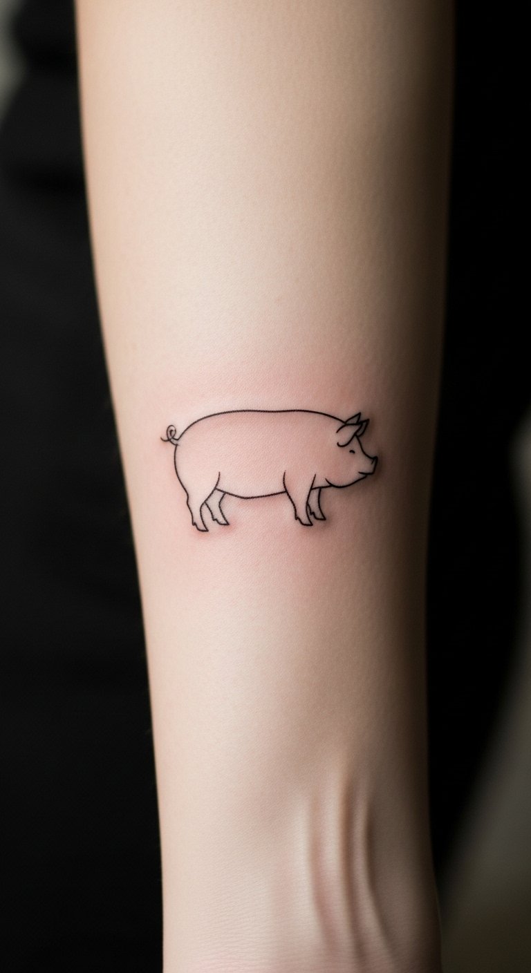 A minimalist pig outline keeps things sleek. It’s modern and understated. Draw it freehand on paper first. Use a ruler for straight edges. This style costs as little as $40. Place it on your wrist for subtlety. Add a small twist, like a tail curve. It’s great for professional settings. Try sticker tattoos to preview. They are cheap and reusable. Focus on thin lines for speed. You’ll appreciate the clean look. Mix it with other simple designs. This option fits any budget easily.