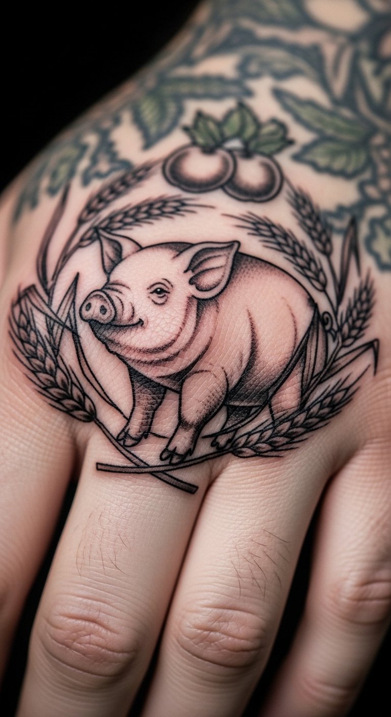 A pig tattoo for abundance attracts good vibes. Use symbols like fruits. Draw it with symbolic items nearby. Online resources explain meanings. Expect $60 for this. Wear it on your hand for visibility. Add coins or grains. It’s motivating every day. Practice with symbolic drawings. Paper is all you need. Make it personal and simple.