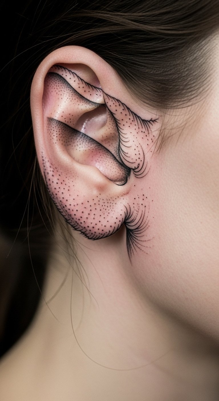Unique pig ear tattoo focuses on the ear. It stands out alone. Draw the ear shape. Use references online. This is about $45. Place it on your neck. Add patterns inside. It’s distinctive and cool. Try ear sketches. Paper works fine. Keep it precise. This design surprises.