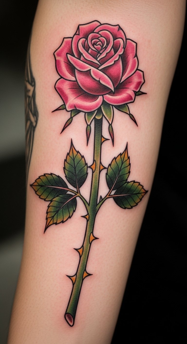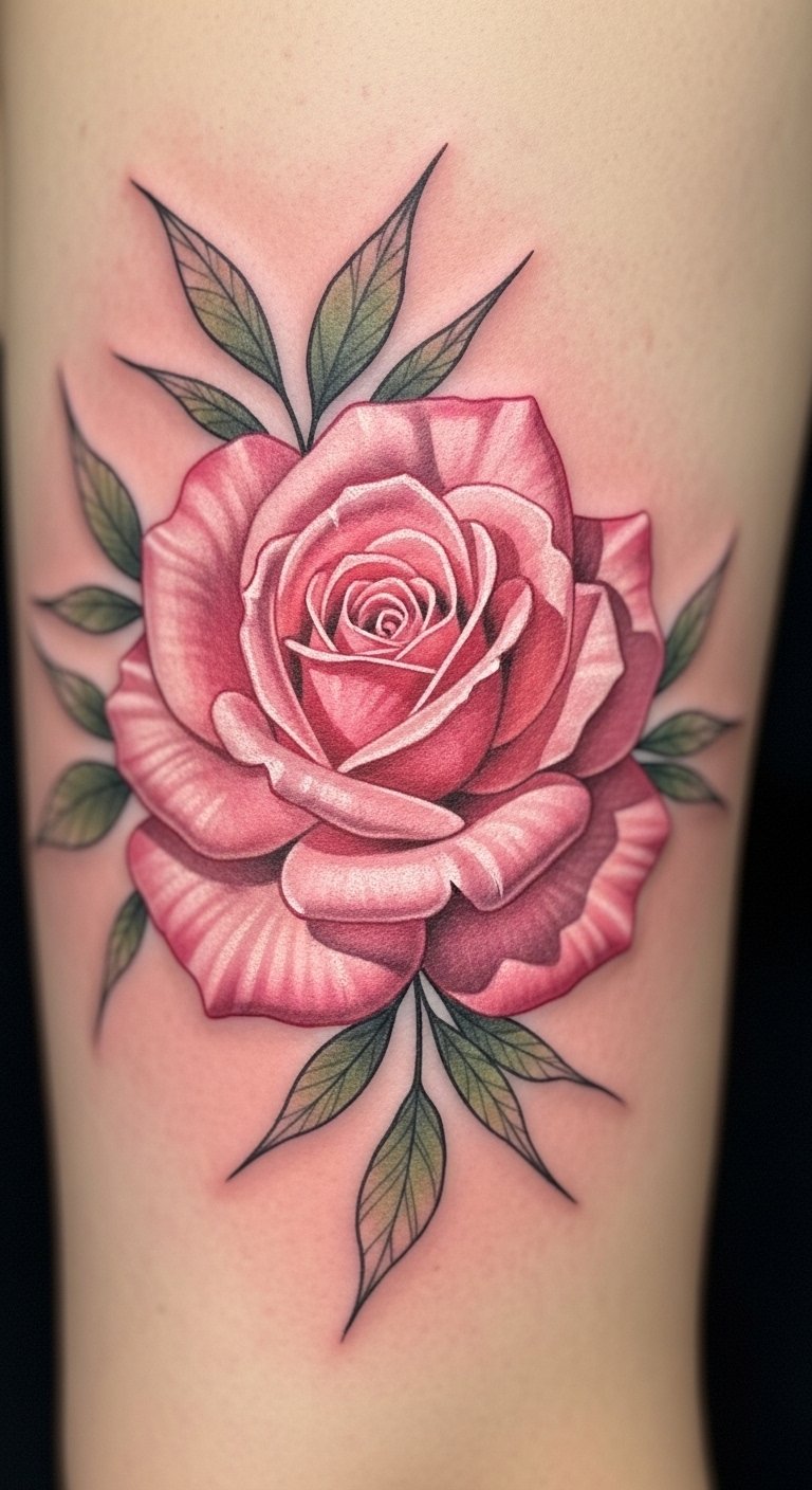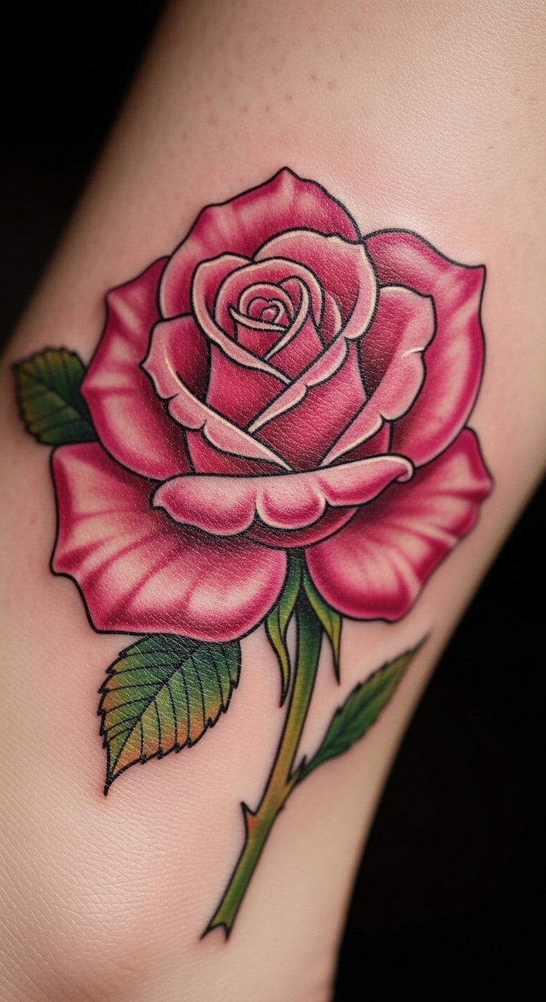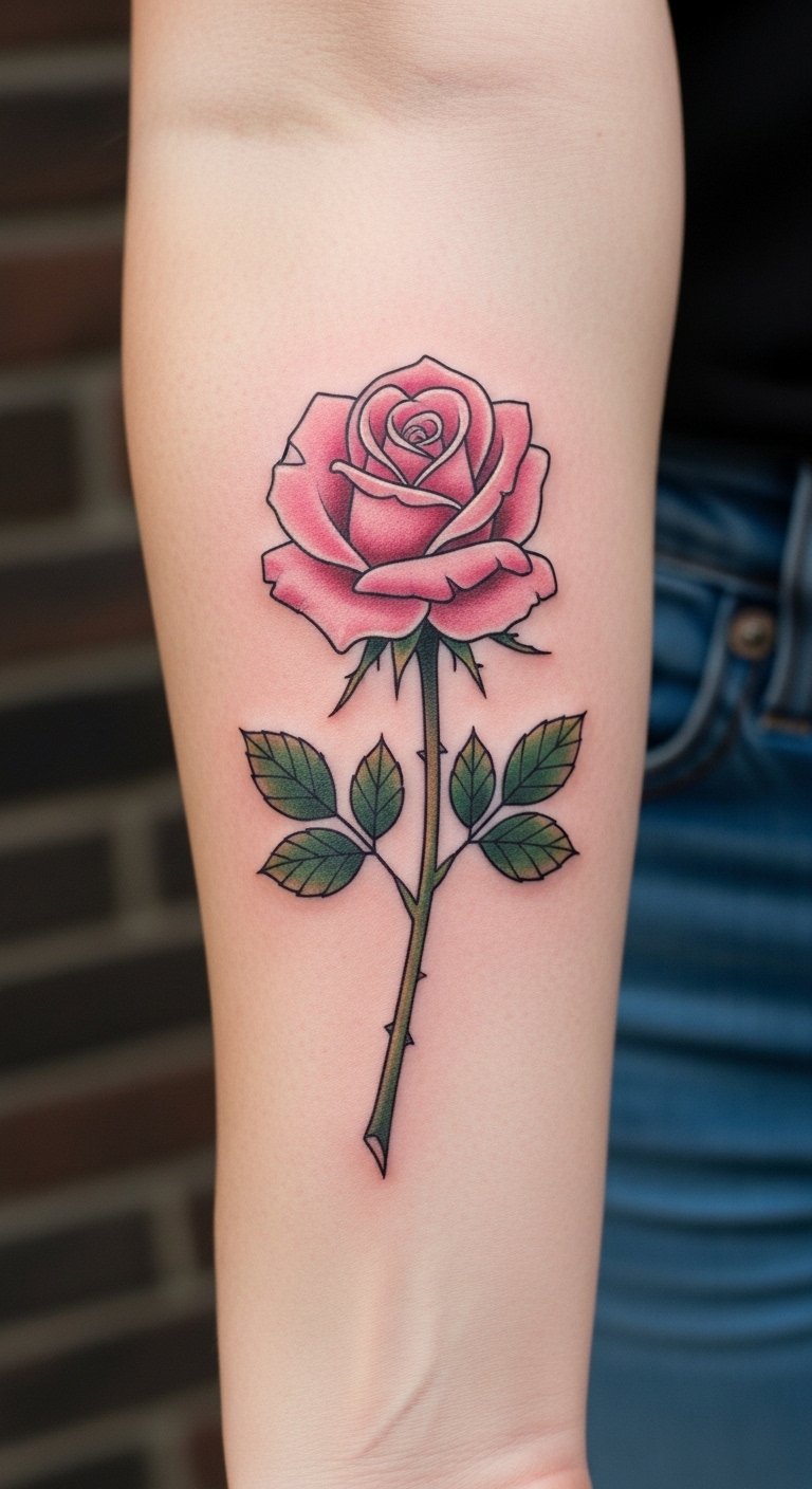 A classic pink rose with a stem keeps things timeless on your body. See it as a nod to enduring beauty. Sketch the full design on paper to get the proportions right. Keep costs down by selecting a standard size, about $100. Access free design software to tweak it. Put it on your arm for easy access. Add thorns for texture, practicing with pencils. Book in advance for better prices. This style fits formal events, blending in seamlessly. Use stickers to preview at home. Choose steady lines for durability. Find artists who specialize in basics. You’ll appreciate the simplicity it brings. Make it unique with slight modifications. Draw from old photos for inspiration.