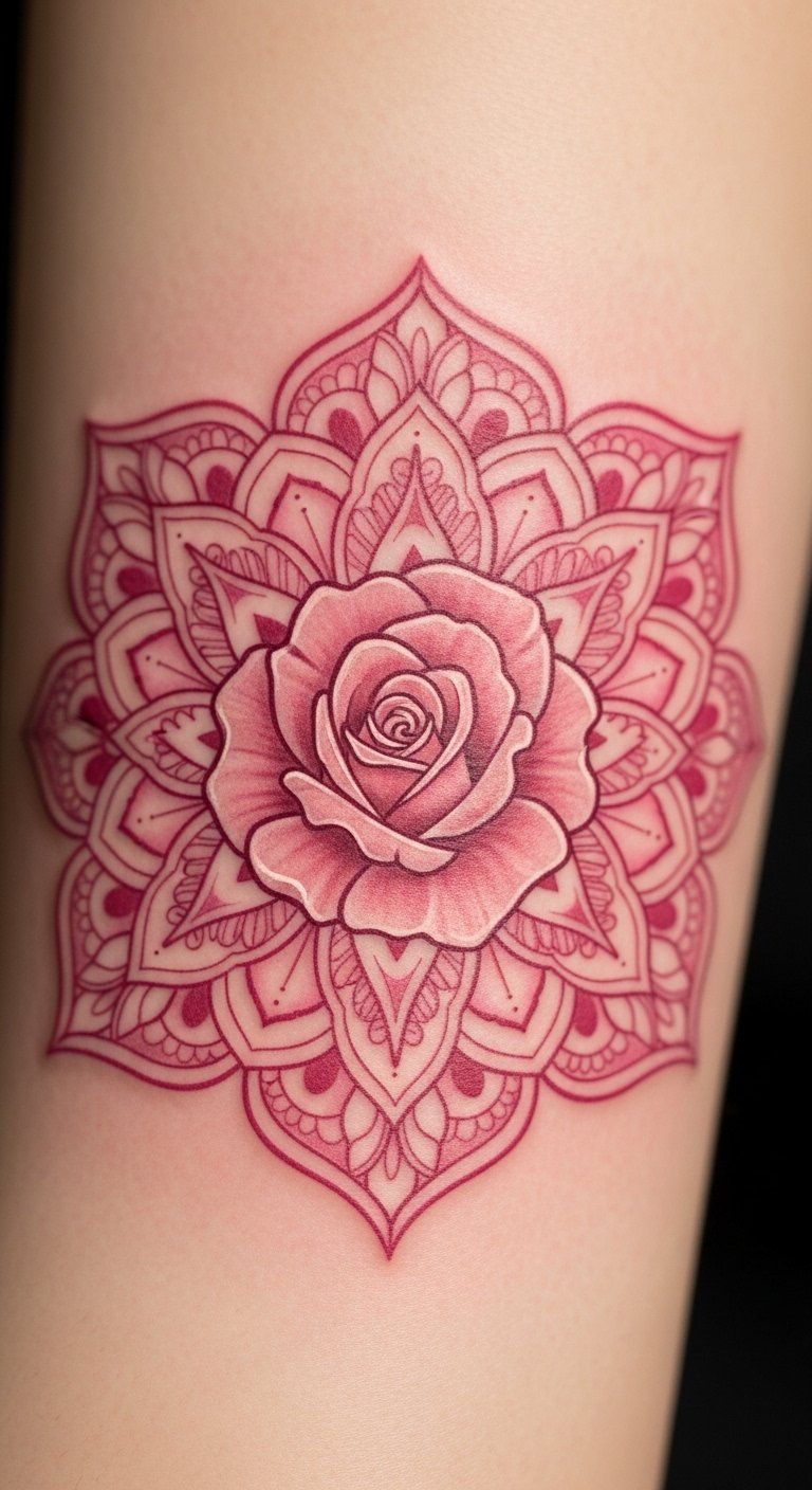 Intricate Pink Rose Mandala