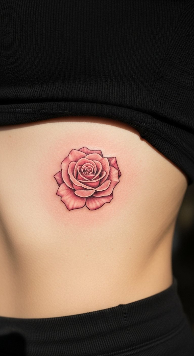 A charming pink rose on your ribs adds a secret touch. Imagine it as a personal whisper. Outline it on your side with tape for fit. Budget with a small rib design, under $110. Download free rib templates. Keep it low for discretion. Add curves for flow, sketching them yourself. Schedule for comfortable sessions. This tattoo works for intimate settings, staying private. Use rib wraps to test. Opt for gentle colors. Seek rib experts with deals. You’ll appreciate its secrecy. Focus on smooth application. Draw ideas from quiet moments.