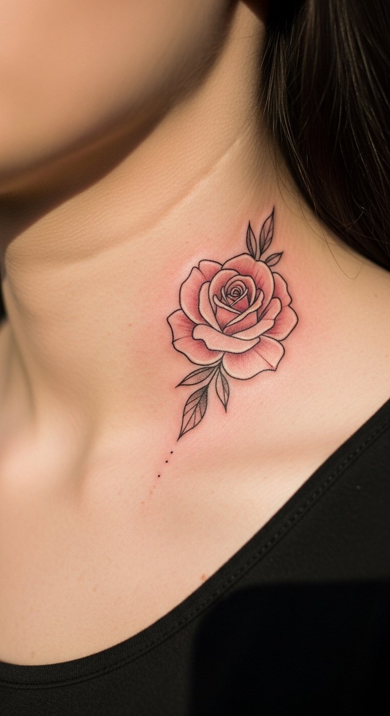 Serene Pink Rose on Collarbone