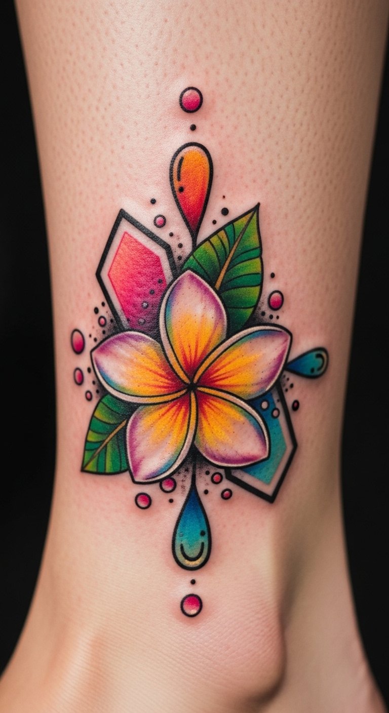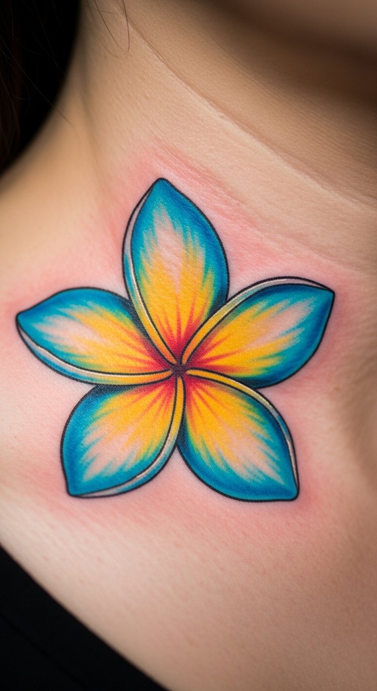 Plumeria tattoos shine with color. They mimic real flower vibrance. Choose this for eye-catching art. Start with paint swatches at home. Free apps simulate hues. Use makeup for tests. It’s free with what you have. Blend shades for pop. Vibrant shades stand out. Opt for the neck subtly. Costs are around $85. Experiment with colors yourself.