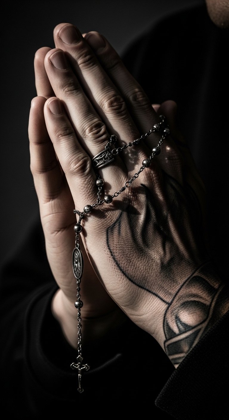 Imagine hands holding a rosary chain for a devotional look. This idea pulls from Catholic practices, linking prayer and reflection. Draw it out on plain paper to plan. Use household items like beads for mock-ups at no cost. Opt for simple lines to cut expenses. Place it on your forearm for a personal touch. Add beads using basic drawing tools if you’re practicing. This tattoo acts as a daily nudge for mindfulness. Share sketches with friends for free feedback. Keep the design straightforward to make it affordable.