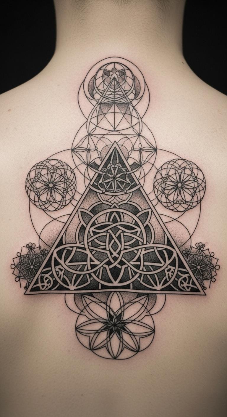 Sacred geometry pyramids use repeating shapes. They create a patterned effect. Start with a compass and paper for designs. Use online templates to print and trace. Put it on your back for a larger canvas. Budget sessions might cost $130. Practice geometry drawings on your desk. This DIY step is free and educational. Keep lines clean for the best look. It adapts to different styles easily.