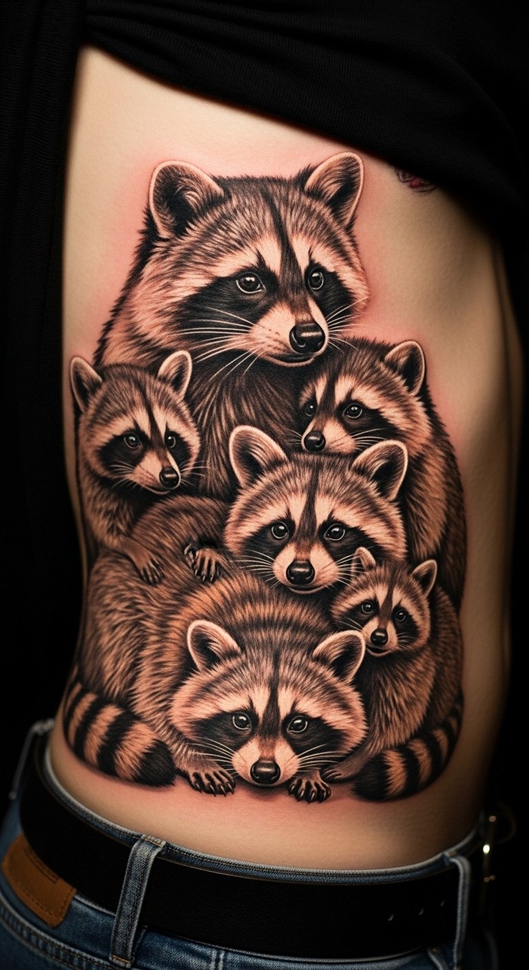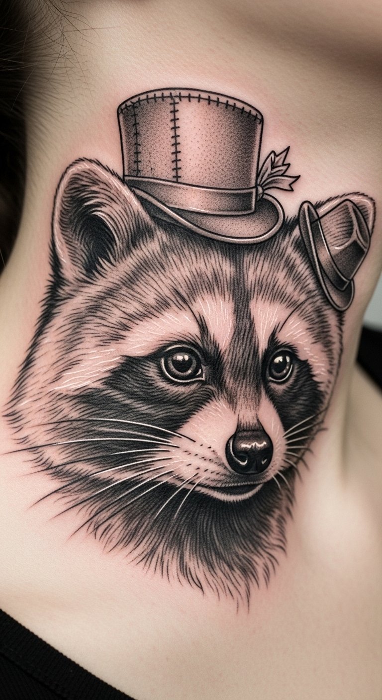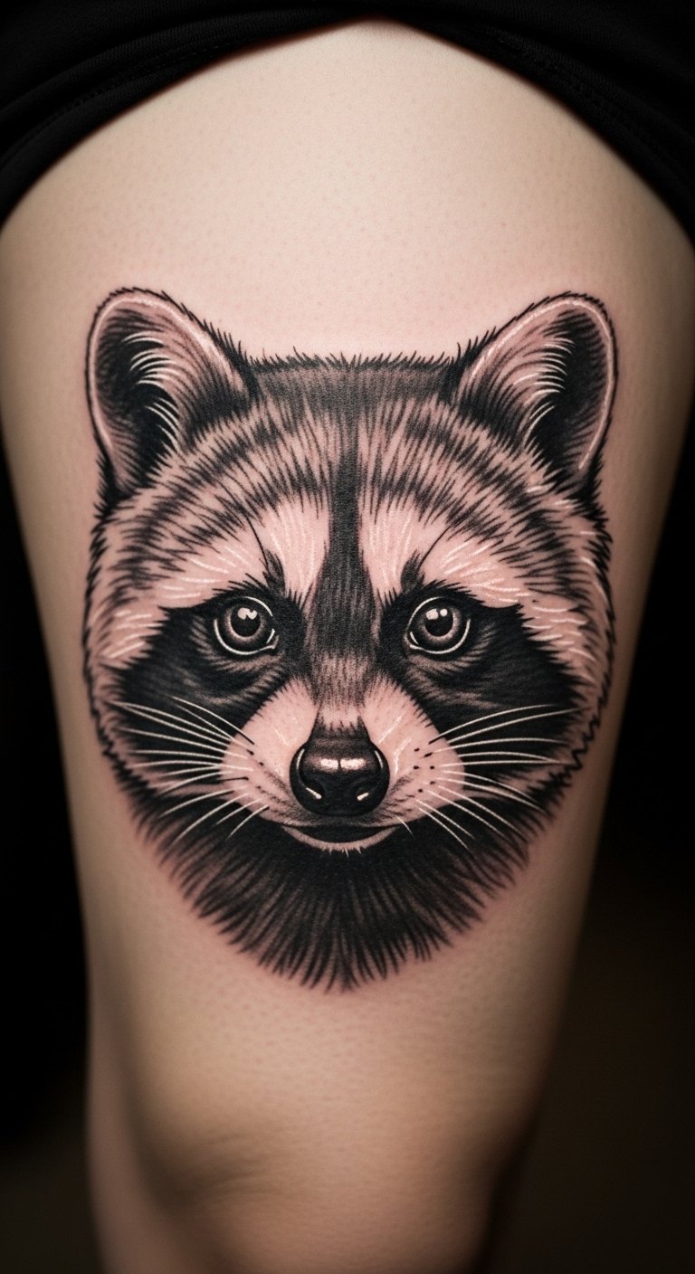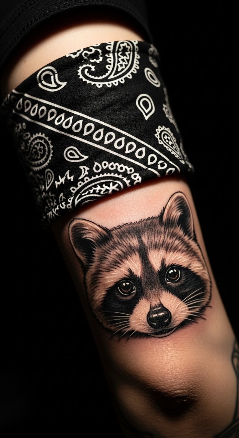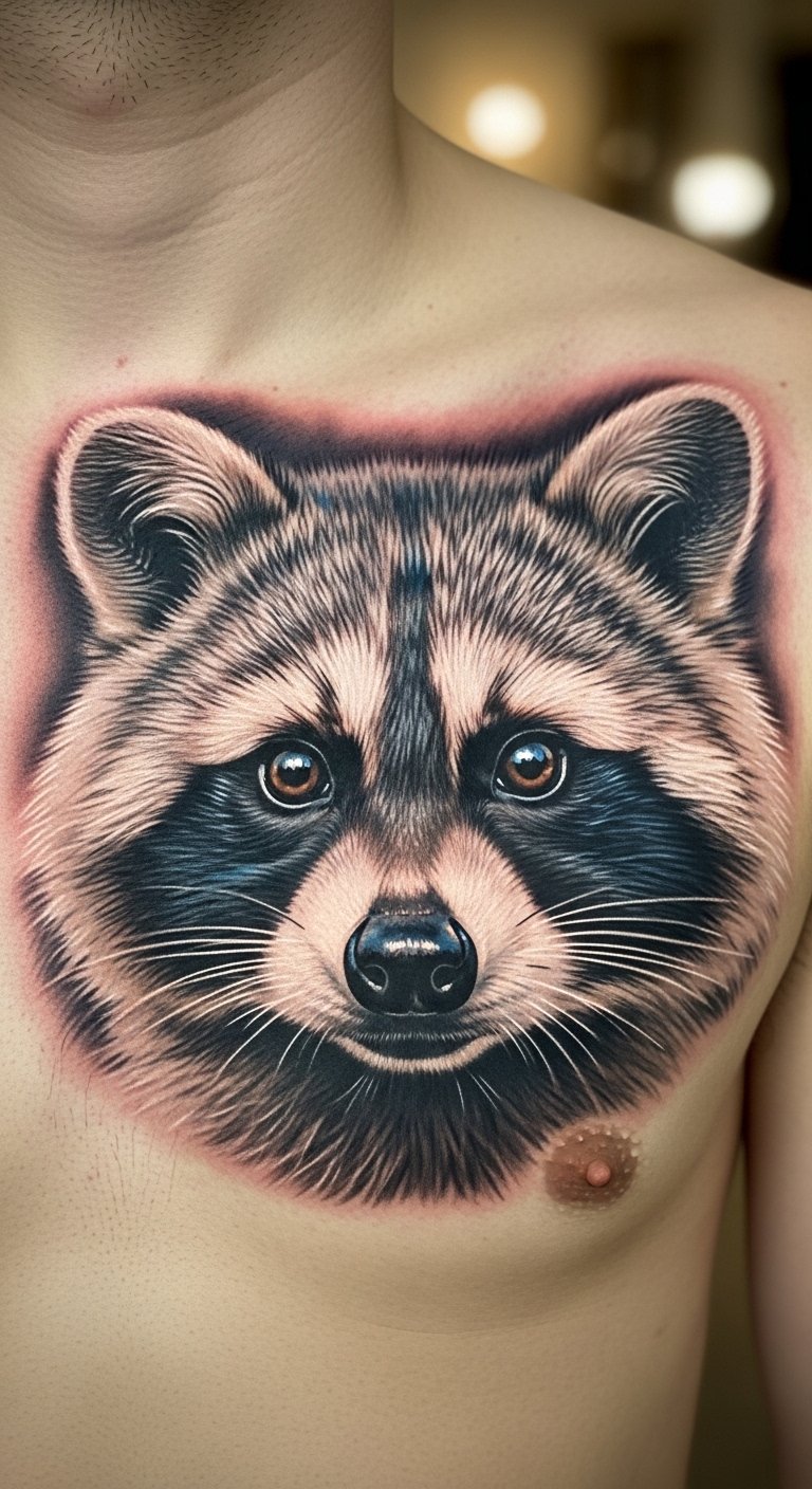 Go for a lifelike raccoon portrait. It makes your tattoo pop. Use photos online as references. Draw it freehand with basic supplies. Focus on fur textures for realism. This suits nature fans. Test with washable inks at home. They cost pennies. Put it on your shoulder for visibility. Look for affordable sessions at walk-in shops. This design shows adaptability clearly. Add a small background if you can. You’ll get a stunning look without breaking the bank.