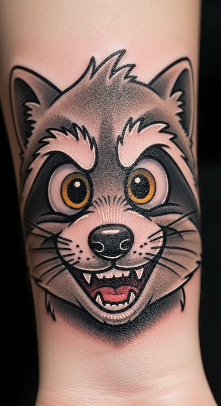 Try a cartoon raccoon for a lighthearted feel. It stands out with big eyes. Draw simple shapes on paper. Use free drawing apps for ideas. Make the face round and fun. This is perfect for casual wear. Practice with stickers first. They are cheap online. Place it on your wrist for daily views. Find deals at local fairs. This design adds curiosity easily. Keep colors bold but simple. You’ll enjoy the whimsy without much effort.