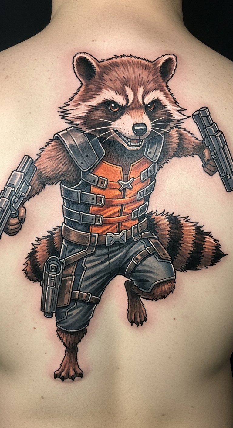 Draw from Rocket Raccoon for a hero vibe. It mixes movies with ink. Sketch the character quickly. Use online templates at no cost. Add weapons or fur details. This fits adventure seekers. Test with printable transfers. They cost little. Put it on your back for a big statement. Search for promo rates at studios. This idea captures cleverness in action. Keep it stylized for fun. You’ll feel like a guardian without overspending.