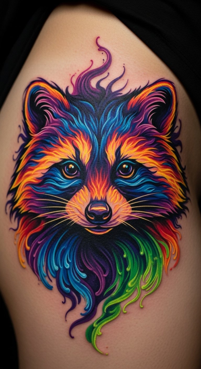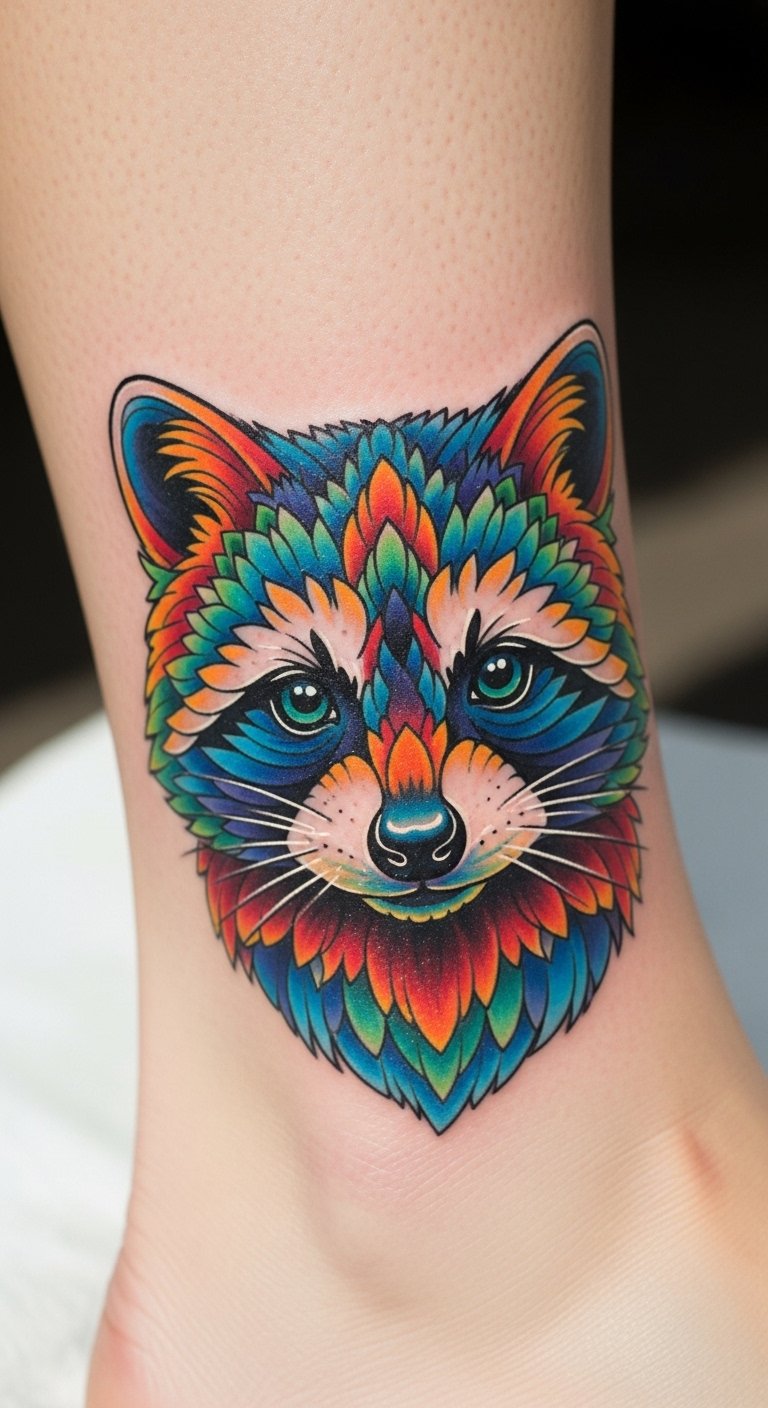 Add colors to your raccoon for vibrance. It makes the design lively. Mix paints at home for tests. Free software helps plan shades. Focus on the mask area first. This works for bright personalities. Use colored markers for trials. They are inexpensive. Place it on your ankle for subtlety. Look for package deals online. This design shows playfulness clearly. Choose a few hues to save. You’ll brighten your look affordably.