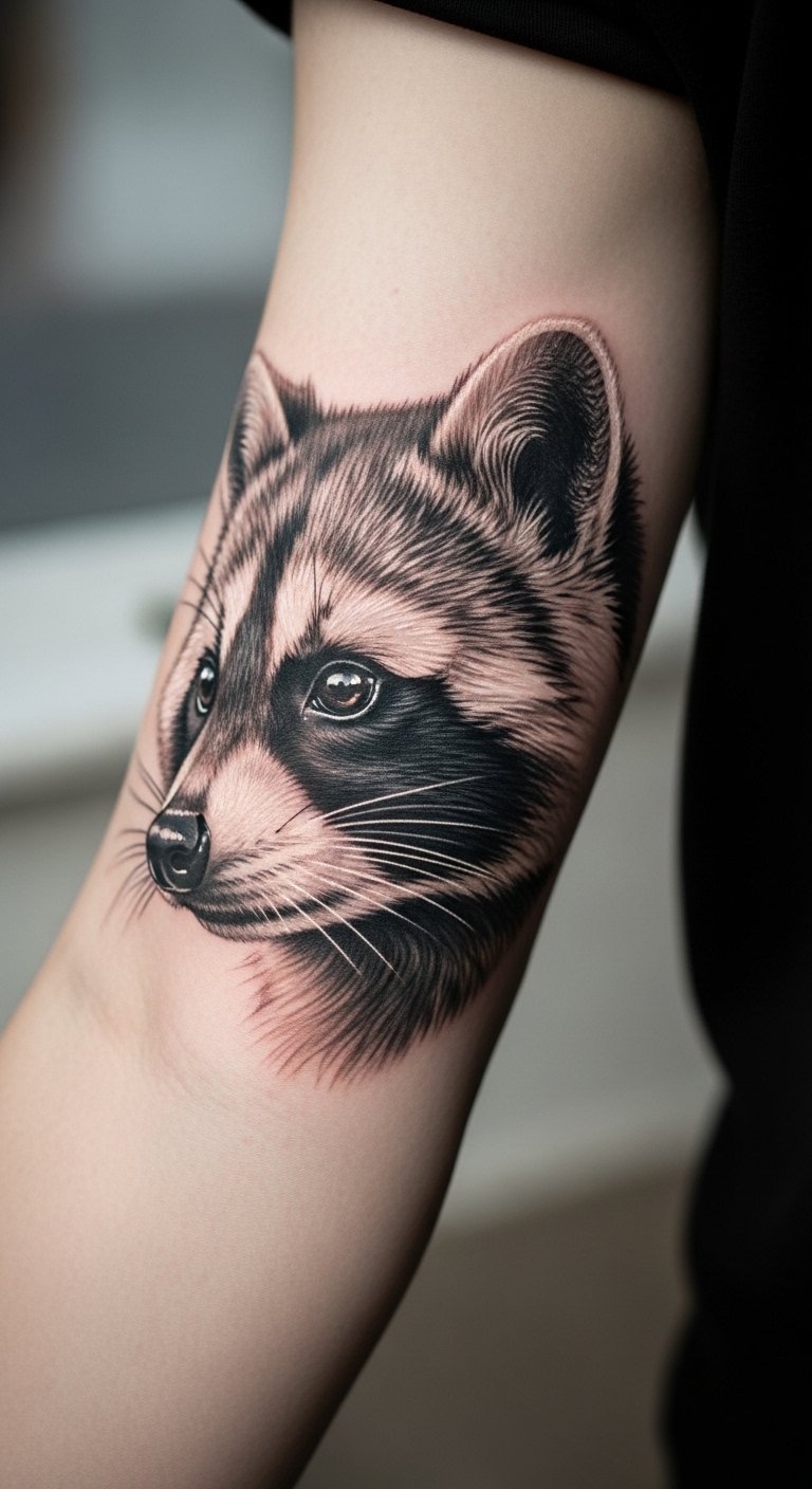 Place your raccoon on the forearm. It shows off daily. Sketch to fit the curve. Use phone apps for free. Make it face outward. This is great for visibility. Try arm bands as tests. They are budget-friendly. Position it midway for balance. Find local ink events. This design adds personal flair. Keep size moderate. You’ll wear it proudly without fuss.