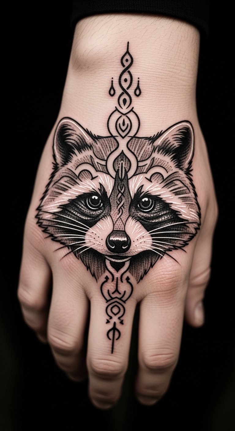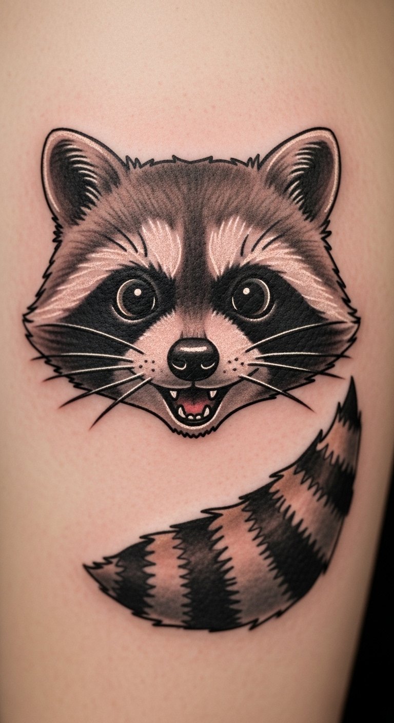 Think about a straightforward raccoon face. It keeps things basic but eye-catching. Start with a sketch on paper. Use free online tools to draw it yourself. Add small tweaks like a curved tail for fun. This design works on any spot. Keep costs low by talking to a local artist instead of big studios. Try practicing with temporary tattoos first. They cost less than $5 online. You’ll see how it looks before going permanent. Mix in colors if you want pop. Bold choices make it yours. Go for black ink to save money. This idea lets you show curiosity without overcomplicating.