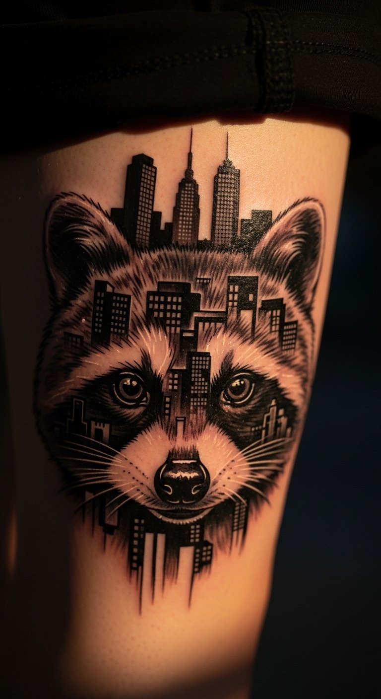 Set your raccoon in a city. It mixes worlds. Sketch buildings around it. Free urban tools help. Place it on a street scene. This is dynamic. Use city stencils cheaply. Put it on your leg for length. Find urban artists. This idea is vibrant. Add key details. You’ll urbanize your ink.