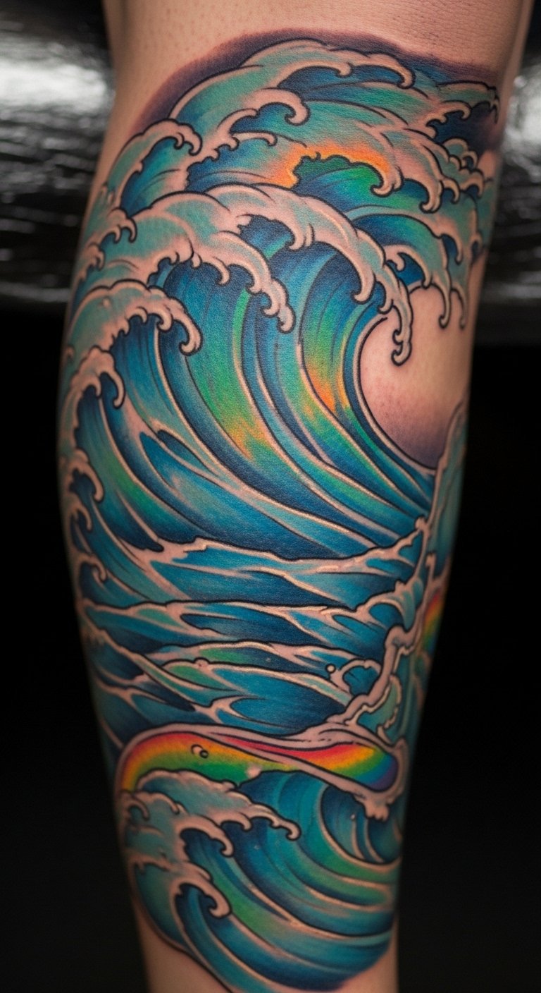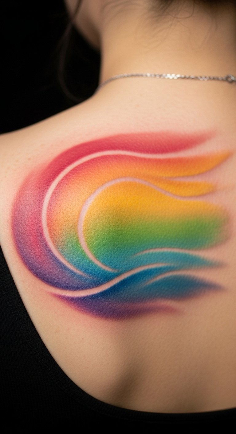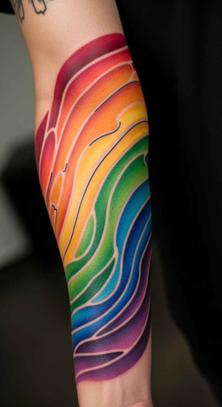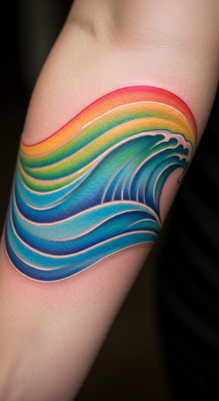 Wave oceans add motion to your rainbow. Colors crash like the sea. Try a small wave on your forearm for $50. Sketch waves with blue pens at home for practice. This keeps it affordable and fun. Seek beach-themed artist specials. Limit colors for quick work. Put it on a flexible spot. It’ll evoke adventure daily. Apps make designing easy.