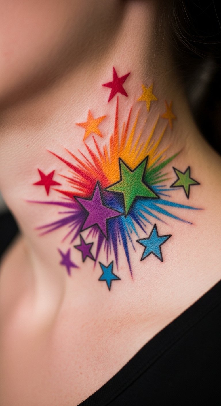 Star-studded rainbows shine bright. They dot your skin with color. Opt for a tiny star on your hand, costing $40. Draw stars with crayons at home to start. This is a cheap way to visualize. Find star pattern deals at shops. Use few elements for speed. Place it for frequent glimpses. It’ll spark joy often. Online sketches help refine it.