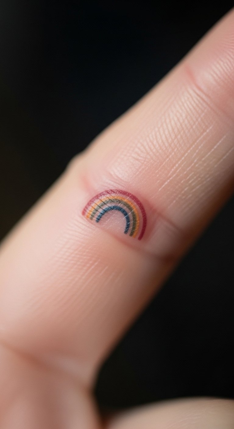 Tiny finger rainbows are discreet and cute. They fit on a digit with ease. Get one for under $30. Draw mini arcs with fine pens at home. This tests the fit quickly. Check for finger tattoo discounts. Keep it to one color band. Put it on your non-dominant hand. It’ll be a secret boost. Apps let you preview it.