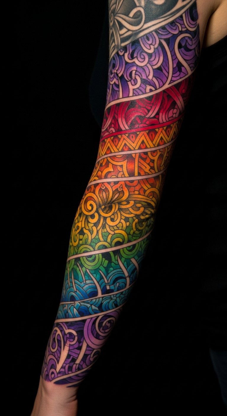 Full sleeve epics cover your arm in rainbow glory. They tell a big story. Build it over time to spread costs, starting at $200. Outline sections at home with sketches. This plans without rush. Look for sleeve package deals. Add elements gradually. Place it for personal expression. It’ll be a lasting statement. Step-by-step guides help track progress.