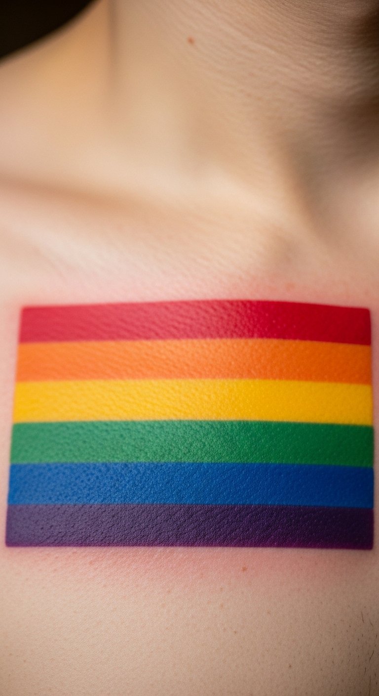 Pride flag rainbows celebrate identity. Colors stand for community. Go for a small version on your back, around $55. Draw flag shapes with colored paper at home. This keeps it meaningful and cheap. Seek pride event tattoos. Use standard colors for accuracy. Position it proudly. It’ll connect you to others. Online resources aid design.