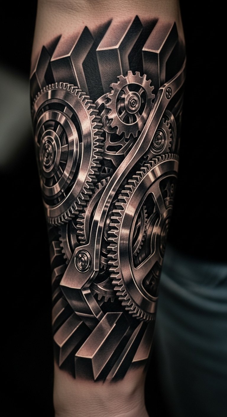3D optical illusions make tattoos look like they move. Picture gears that seem to spin on your arm. Start by watching free videos online for basic illusion tricks. Draw your own version on paper with a ruler for straight lines. This practice helps without any fees. Find artists who do this affordably through social media. Go for simpler shapes to lower the price. Put it on your wrist for a bold effect. These pieces grab attention at events. Make it part of your hobby time. Focus on fun, achievable steps.