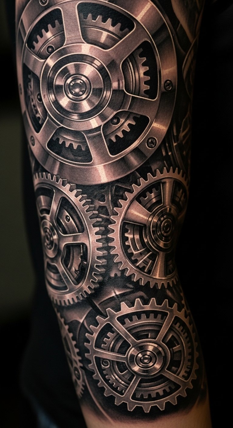 Mechanical gear designs give a tech vibe to your body. Imagine parts that look like real machinery. Sketch gears on paper using basic shapes from household items. It’s an easy, no-cost start. Check local shops for introductory rates on such tattoos. Pick a few gears instead of a full scene to stay budget-conscious. Place them on your forearm for a cool look. These tattoos reflect your passions. Do this during a relaxed afternoon. Focus on simple actions that work.