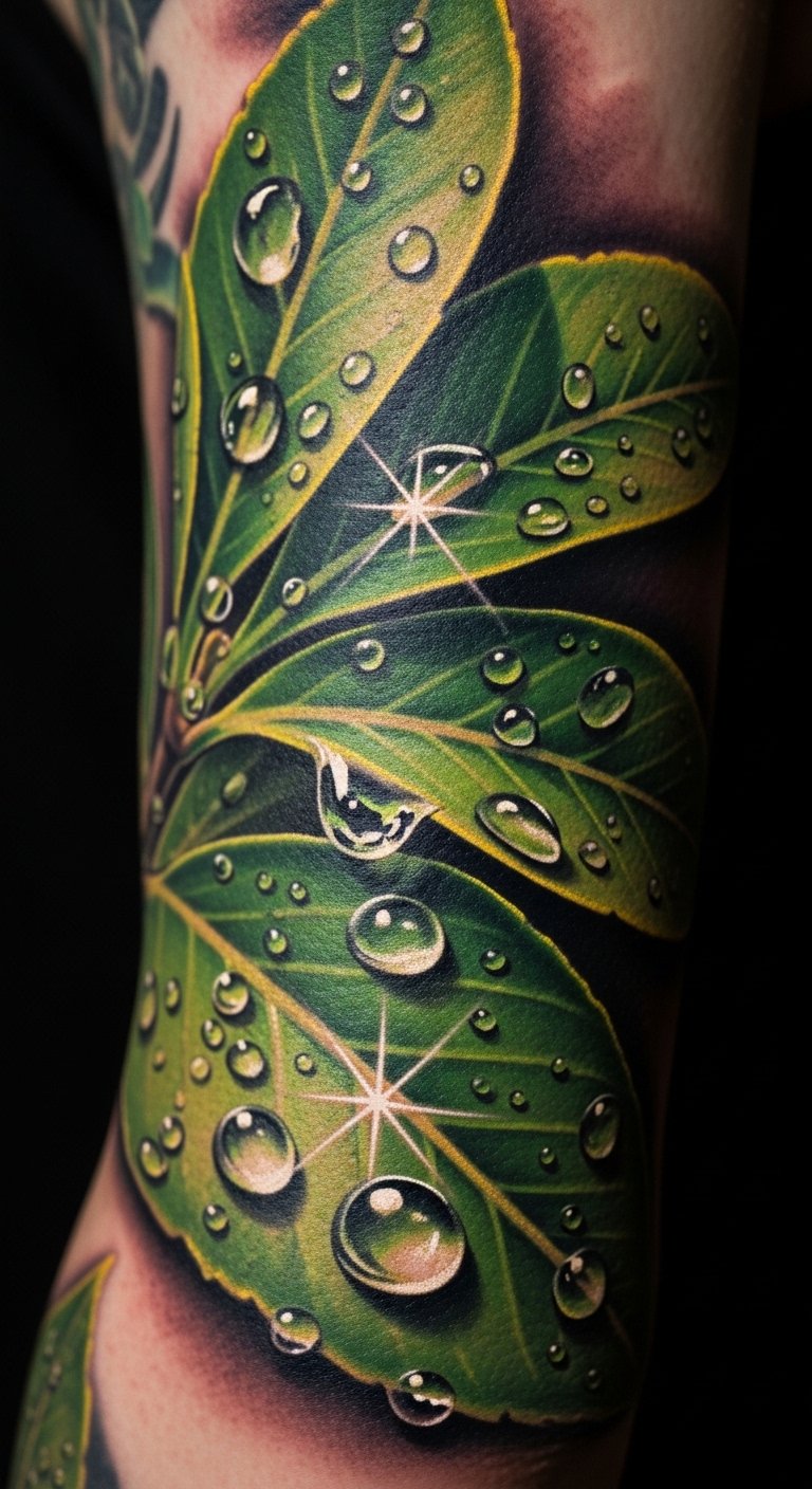 Water droplet effects make tattoos feel wet and real. Envision drops on a leaf design. Use watercolors at home to mimic the look on paper. This costs little and sparks ideas. Look for artists with water-themed discounts. Opt for a small section to save money. Position it on your shoulder for balance. These tattoos add freshness. Do it during a creative break. Keep it straightforward.
