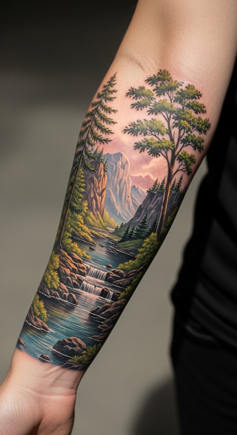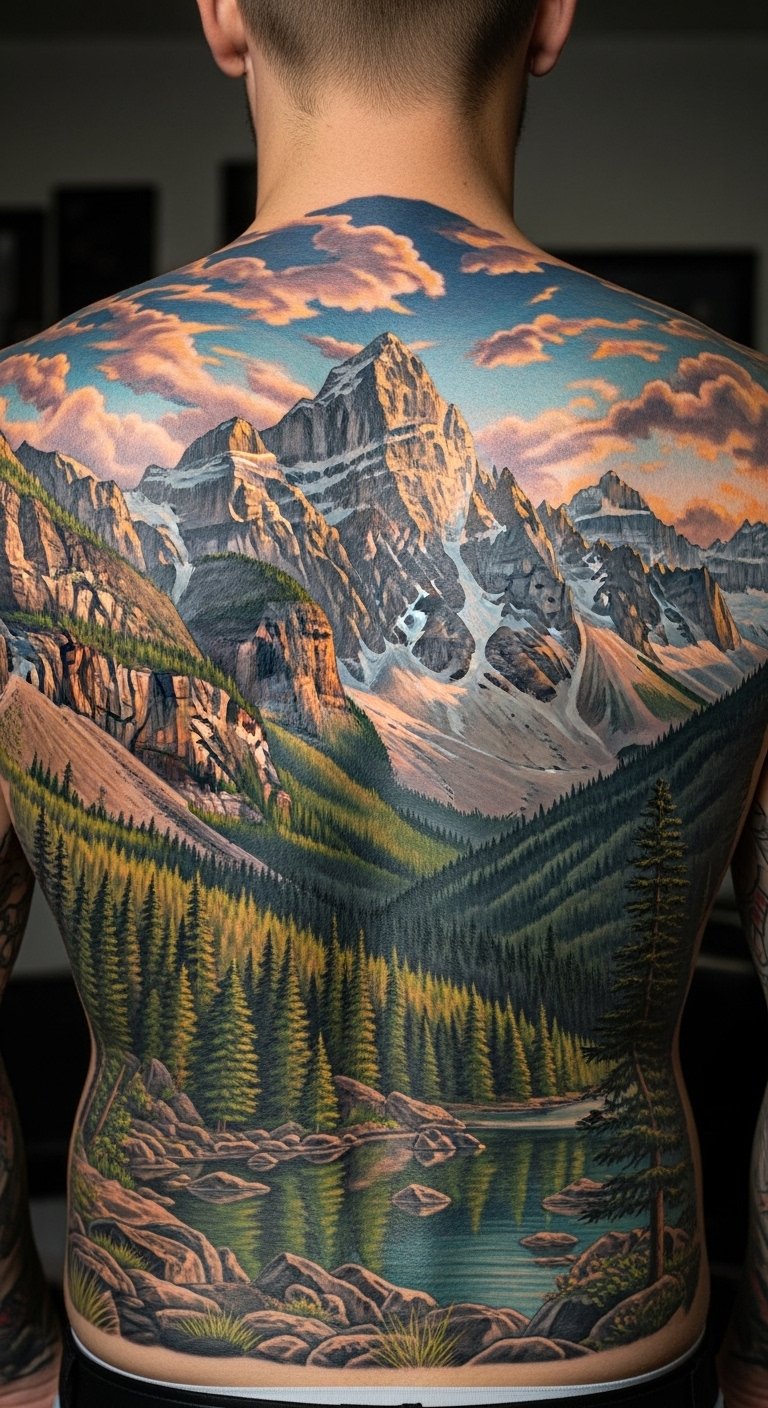 Landscape scenes tattoos capture views. Envision mountains on your skin. Sketch scenes on large paper at home. This is free and helpful. Find landscape deals from artists. Start with horizons to cut costs. Put it on your back for expanse. These tattoos bring nature close. Try a simple outline.
