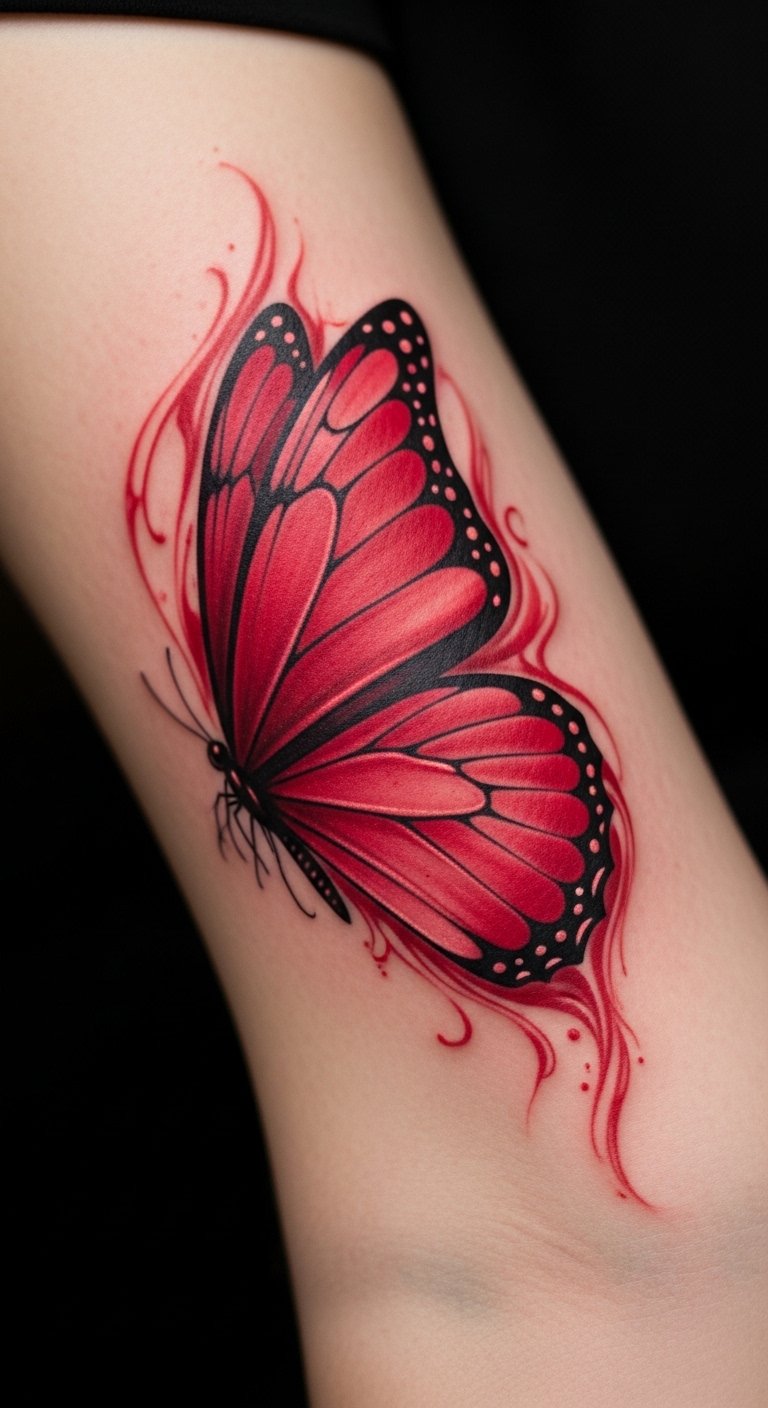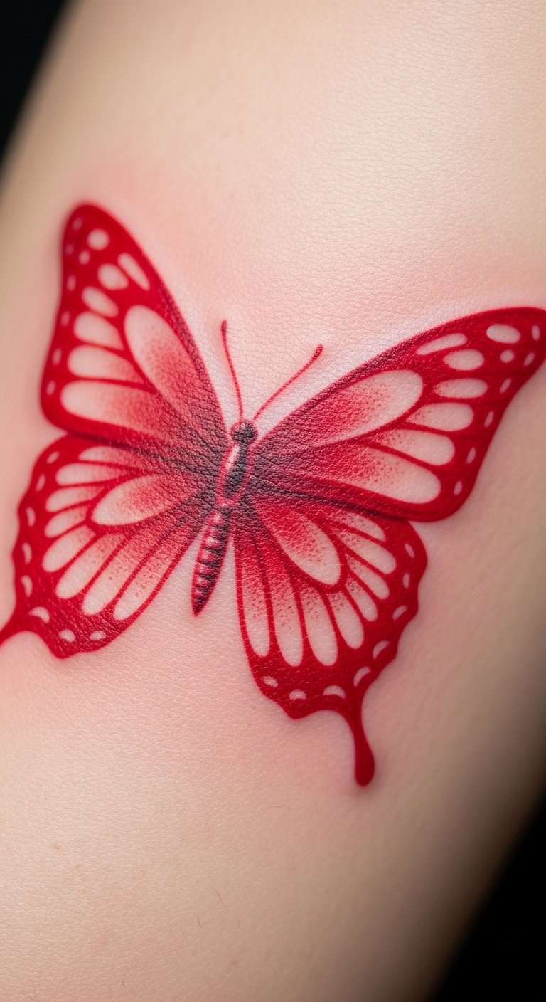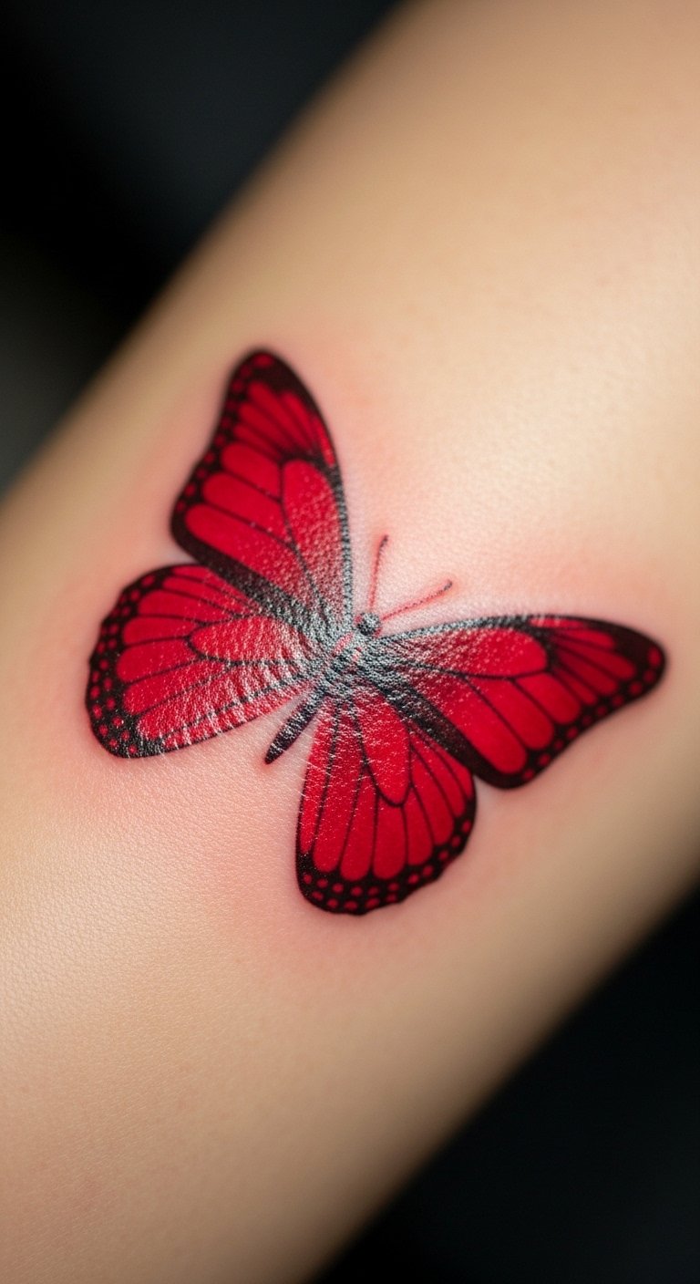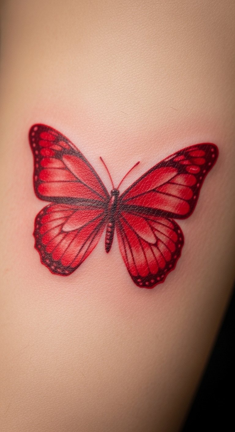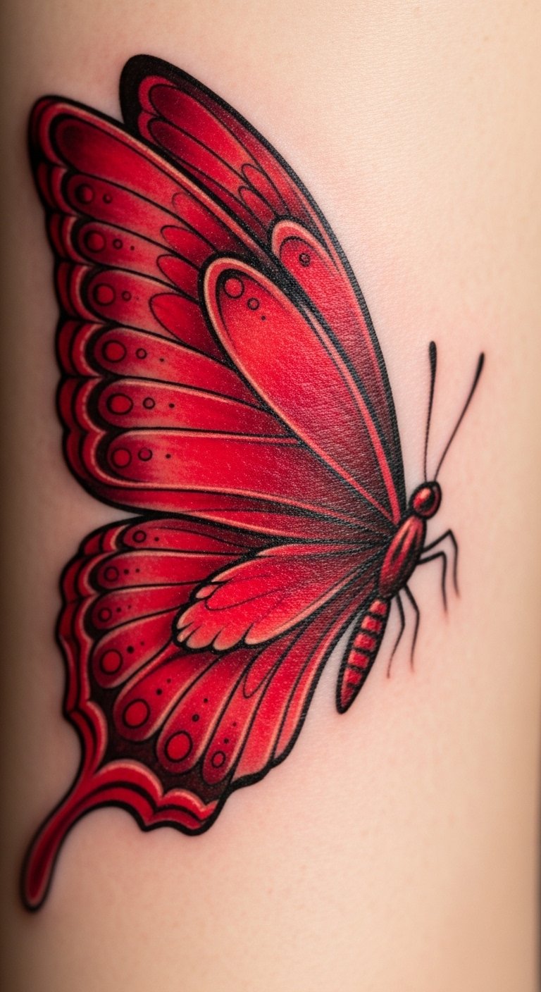 Red butterfly tattoos often stand for fiery passion and love. Think of it as a bold way to wear your heart on your sleeve.